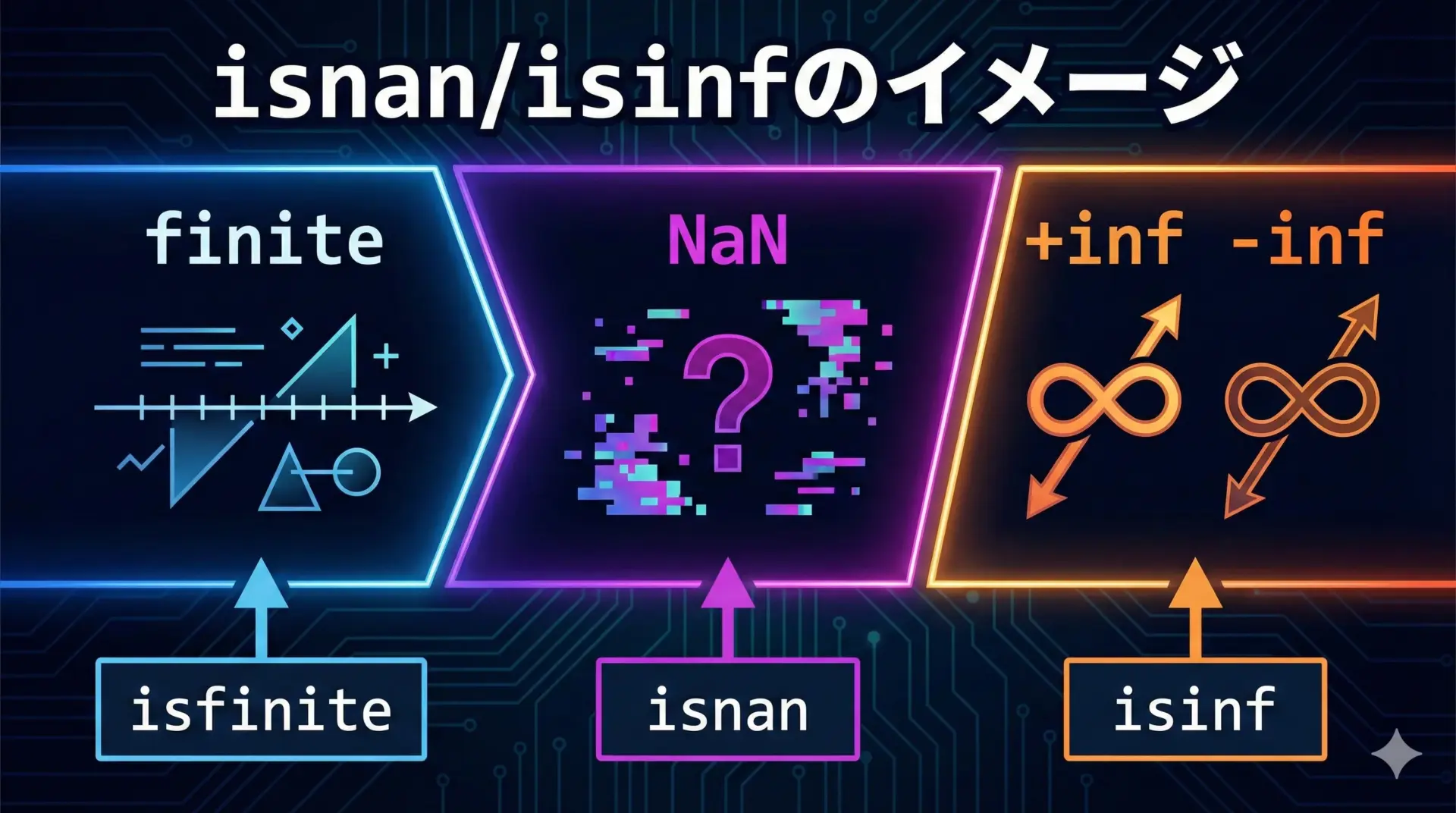 isnan・isinfで結果をチェックする方法