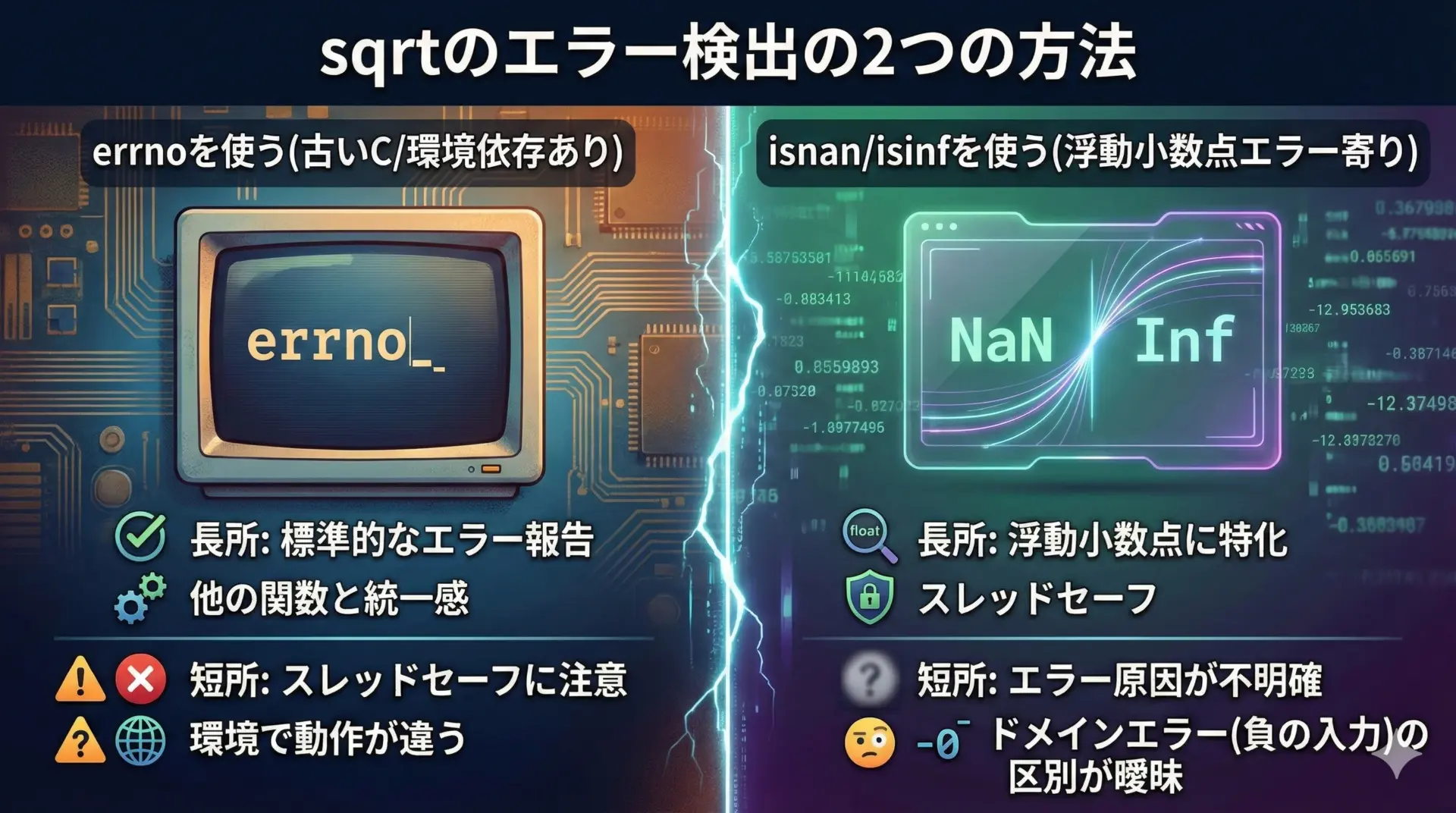 単に平方根を求めるだけでなく、小数の扱い、エラー処理、移植性などを正しく押さえておかないと、思わぬバグや誤差につながります。