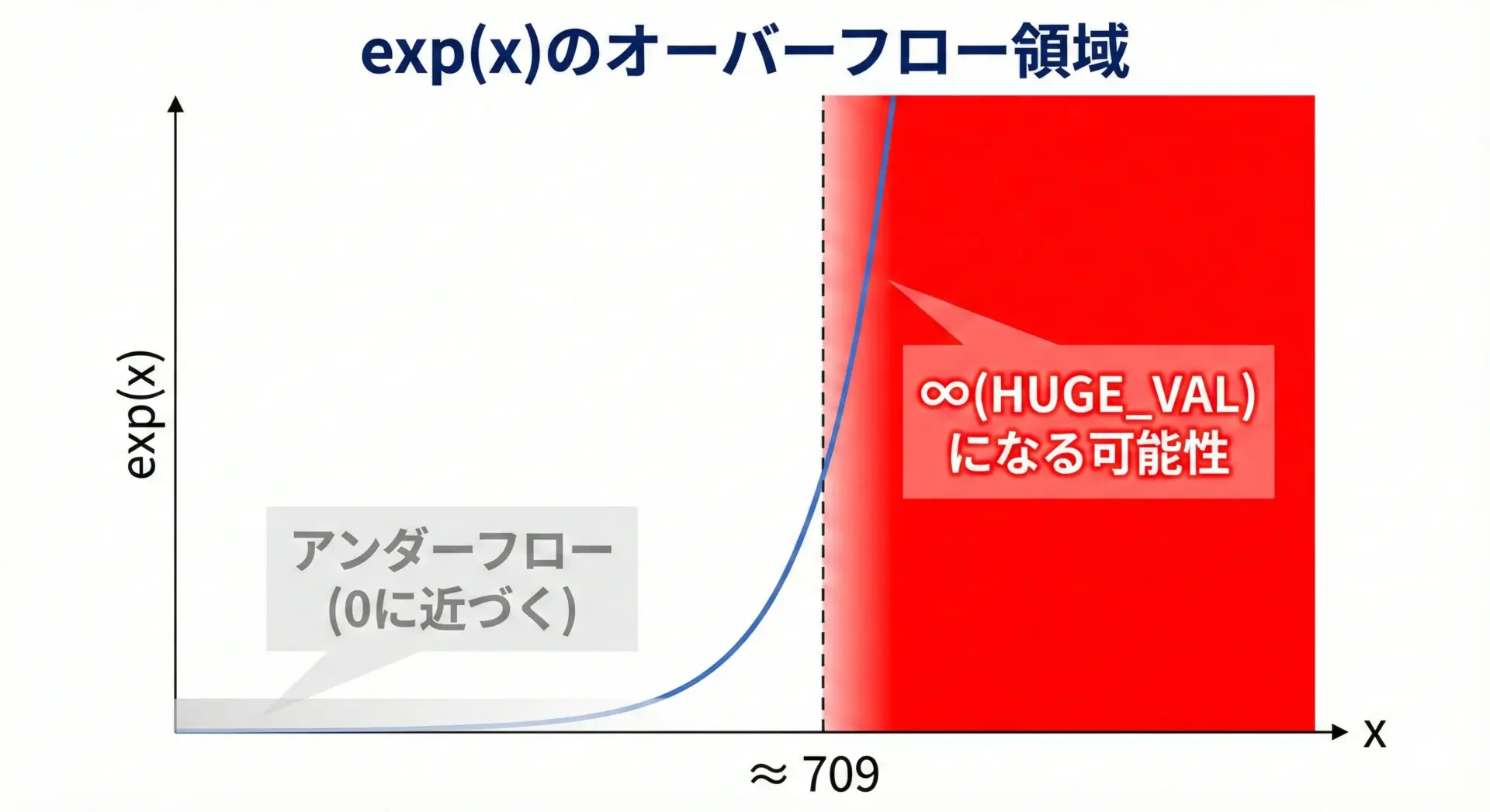 exp(x)はxが大きいとオーバーフローしてinfになります。