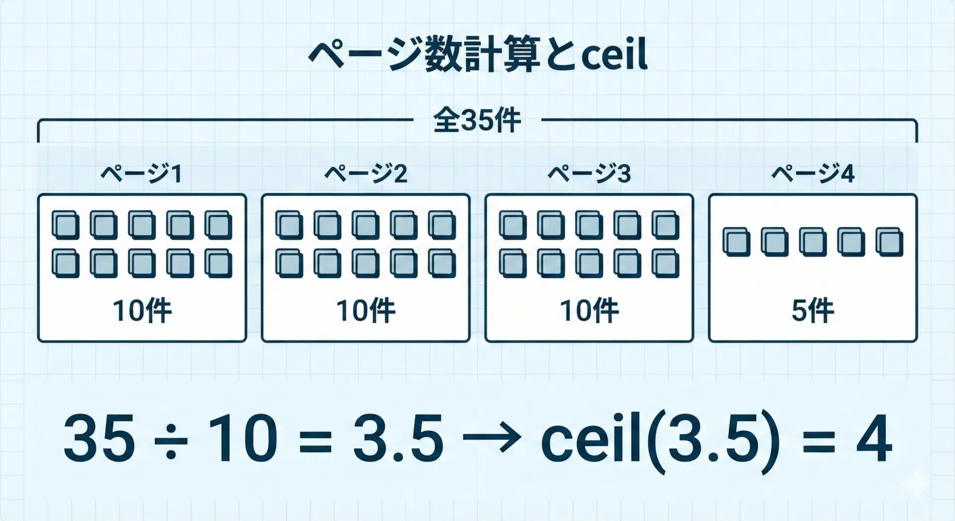 - ページ数の計算(10件ずつ表示、全35件 → 4ページ)