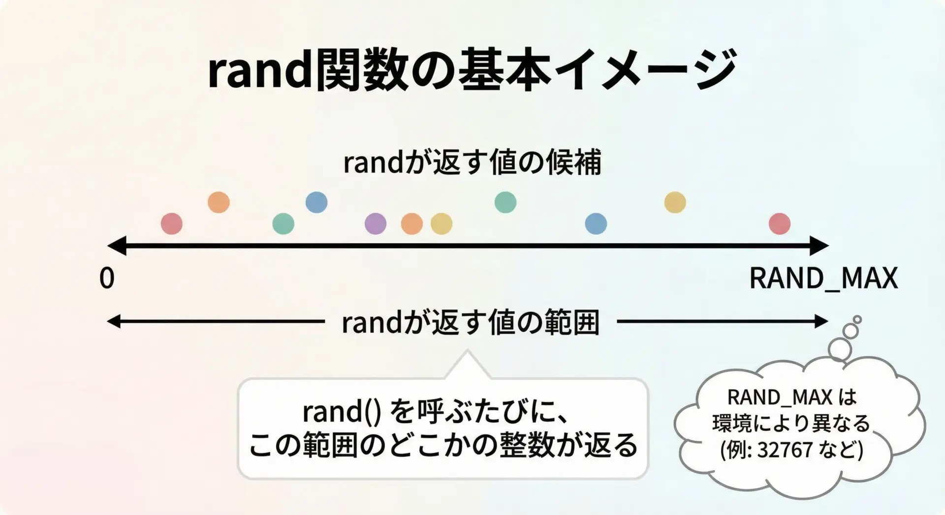 C言語のrand関数は、疑似乱数を簡単に扱うための標準的な手段です。