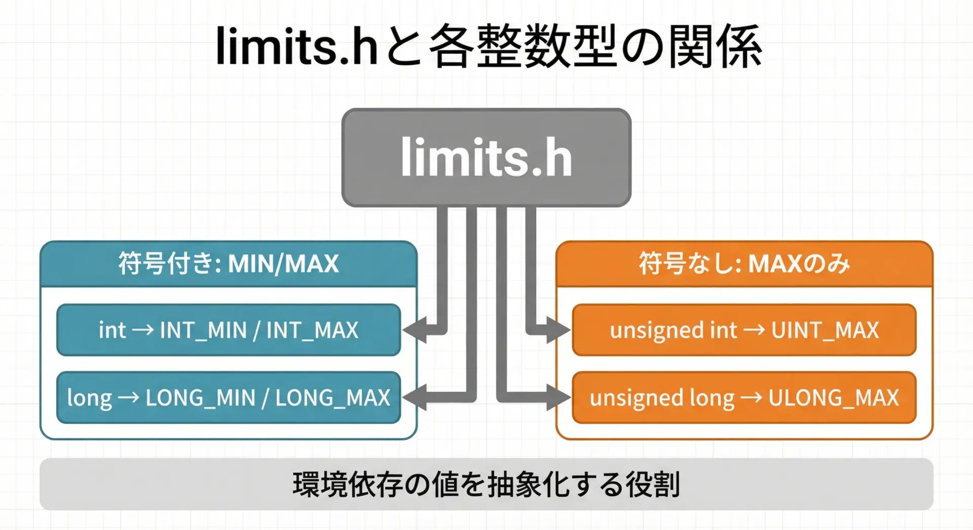 C言語で整数型を安全に扱うには、型ごとの最大値・最小値を把握しておくことがとても重要です。