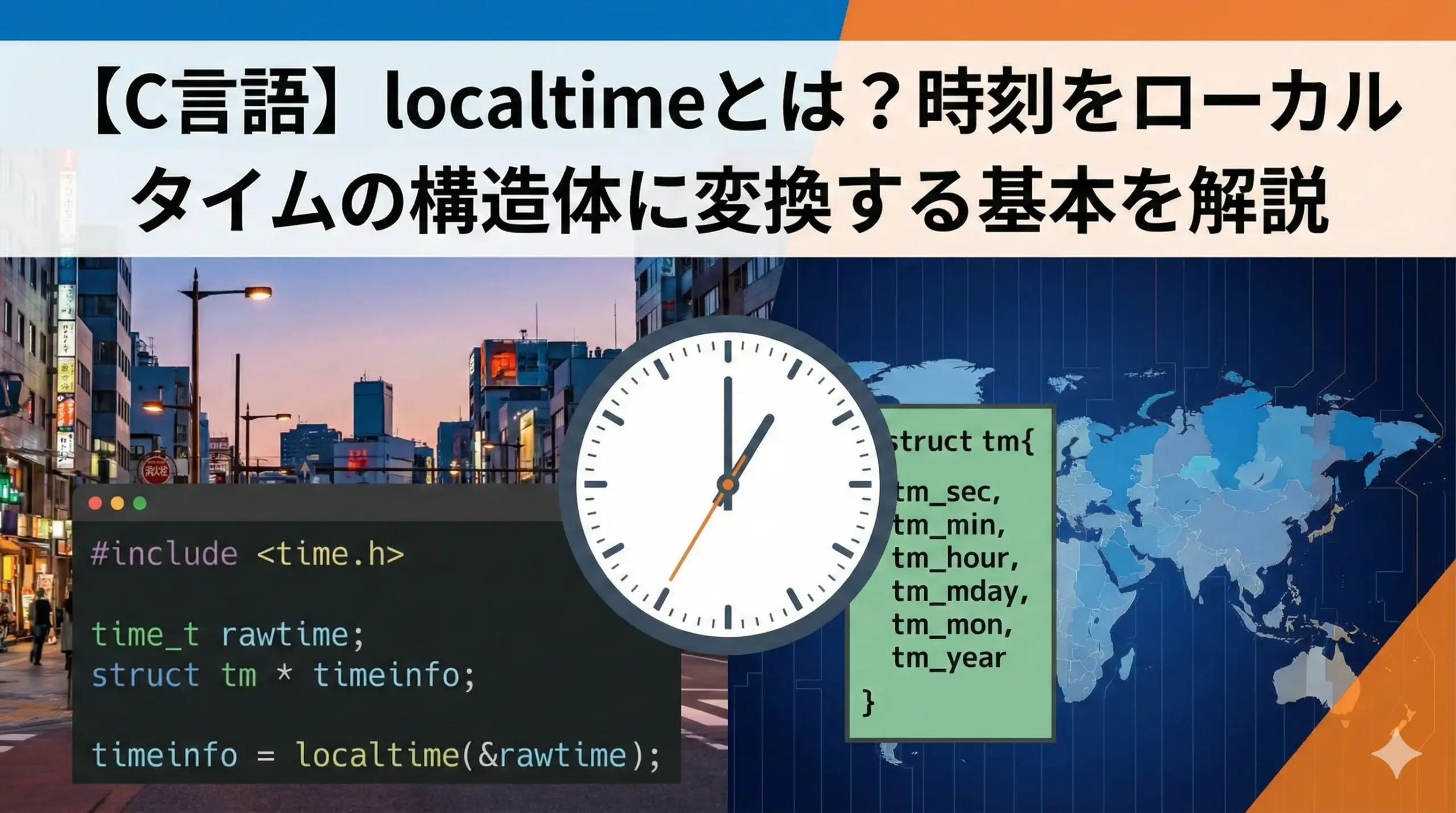 本記事では、現在時刻などのtime_tからローカルタイムのstruct tmへ変換する方法を、初心者の方にも分かりやすいように手順と注意点を丁寧に解説します。