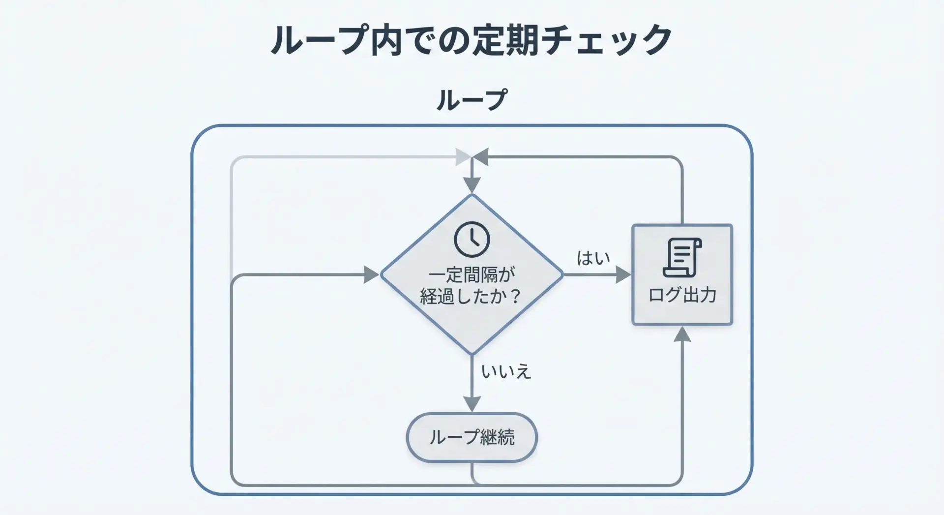 timeと組み合わせることで、処理時間の簡易計測、ループ内での定期チェック、カウントダウンタイマー、タイムアウト判定など、さまざまな実用的機能をシンプルなコードで実現できます。