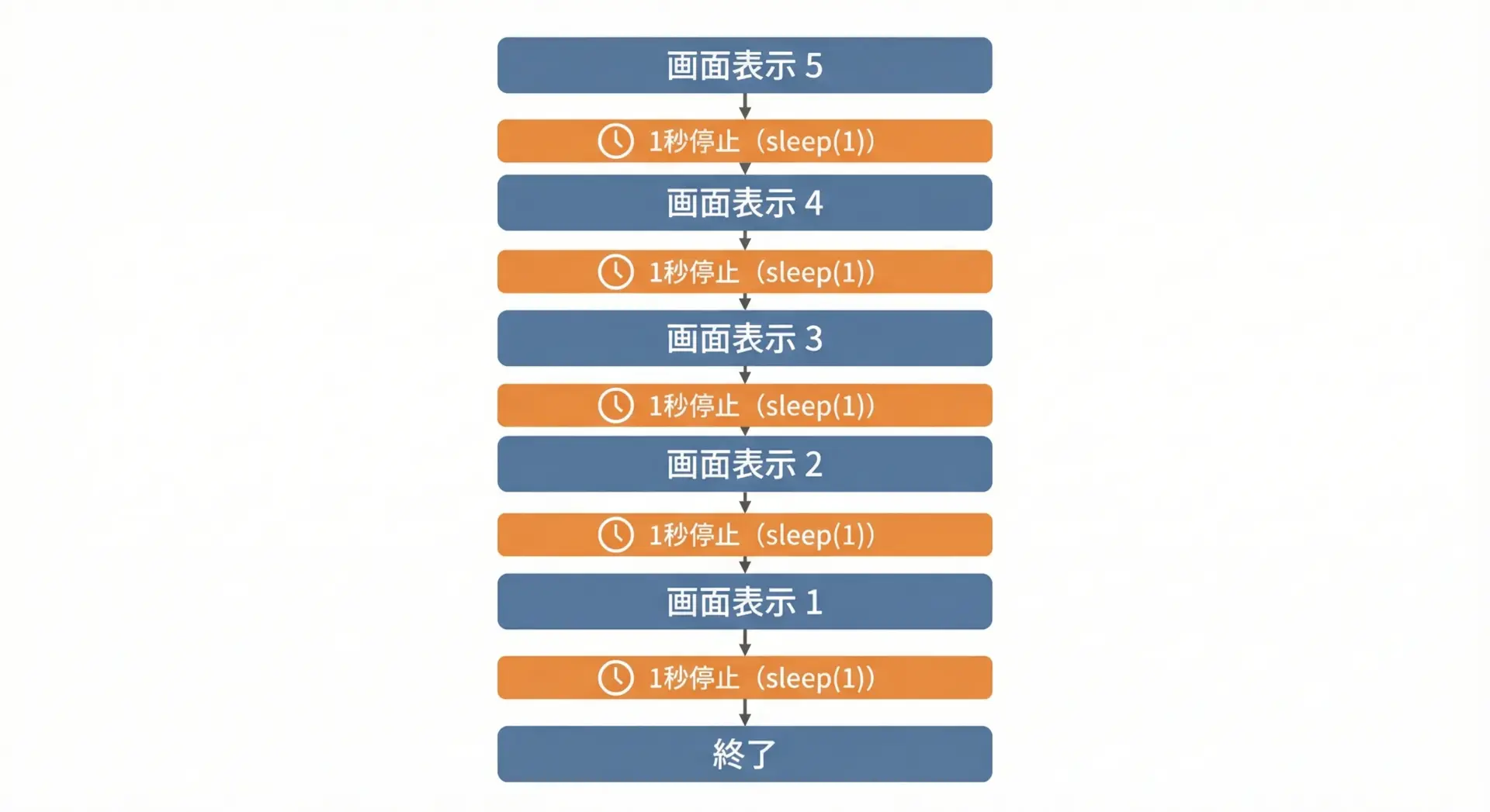sleepを使って「1秒待つ」「5秒待つ」と明示しておけば、意図がコードから読み取りやすくなります。