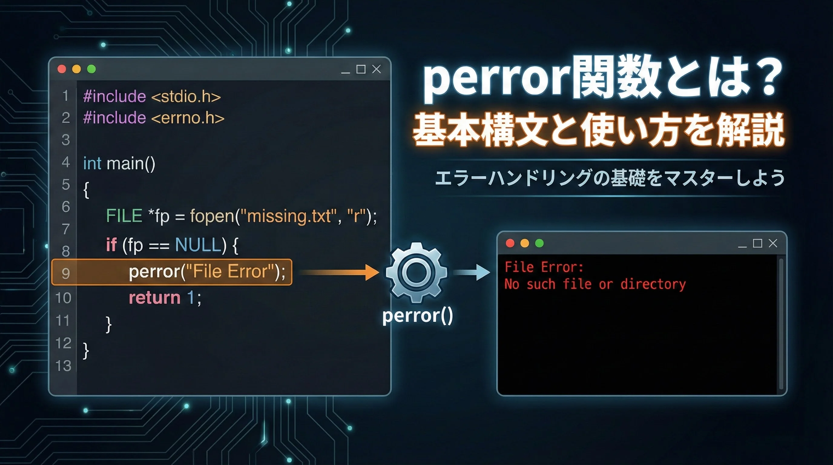 本記事では、perrorの基本構文から、実際の使い方、注意点までを、サンプルコード付きで分かりやすく解説します。