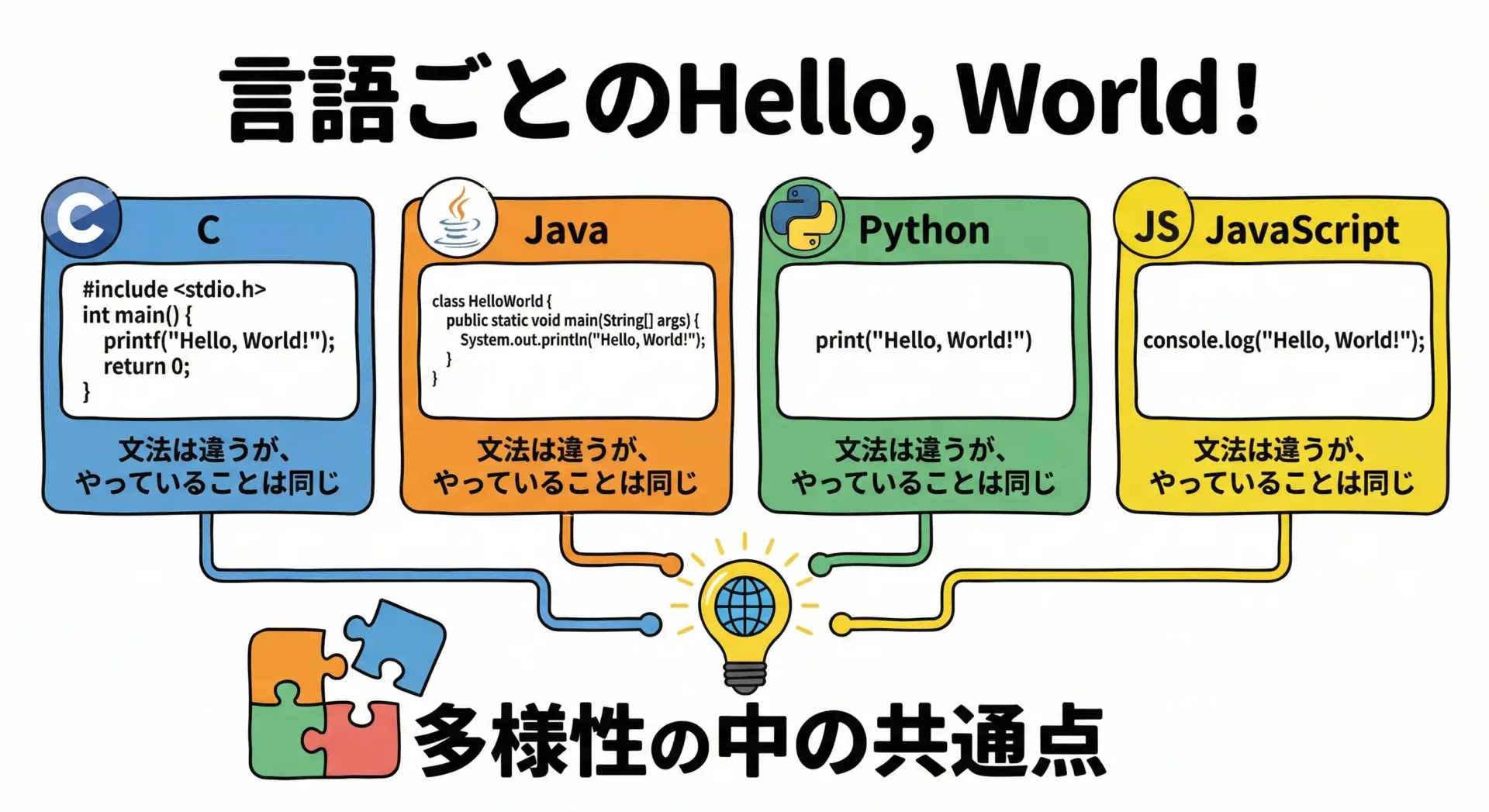 プログラミング学習の最初に現れる「Hello, World!」は、なぜ世界中で同じなのでしょうか。