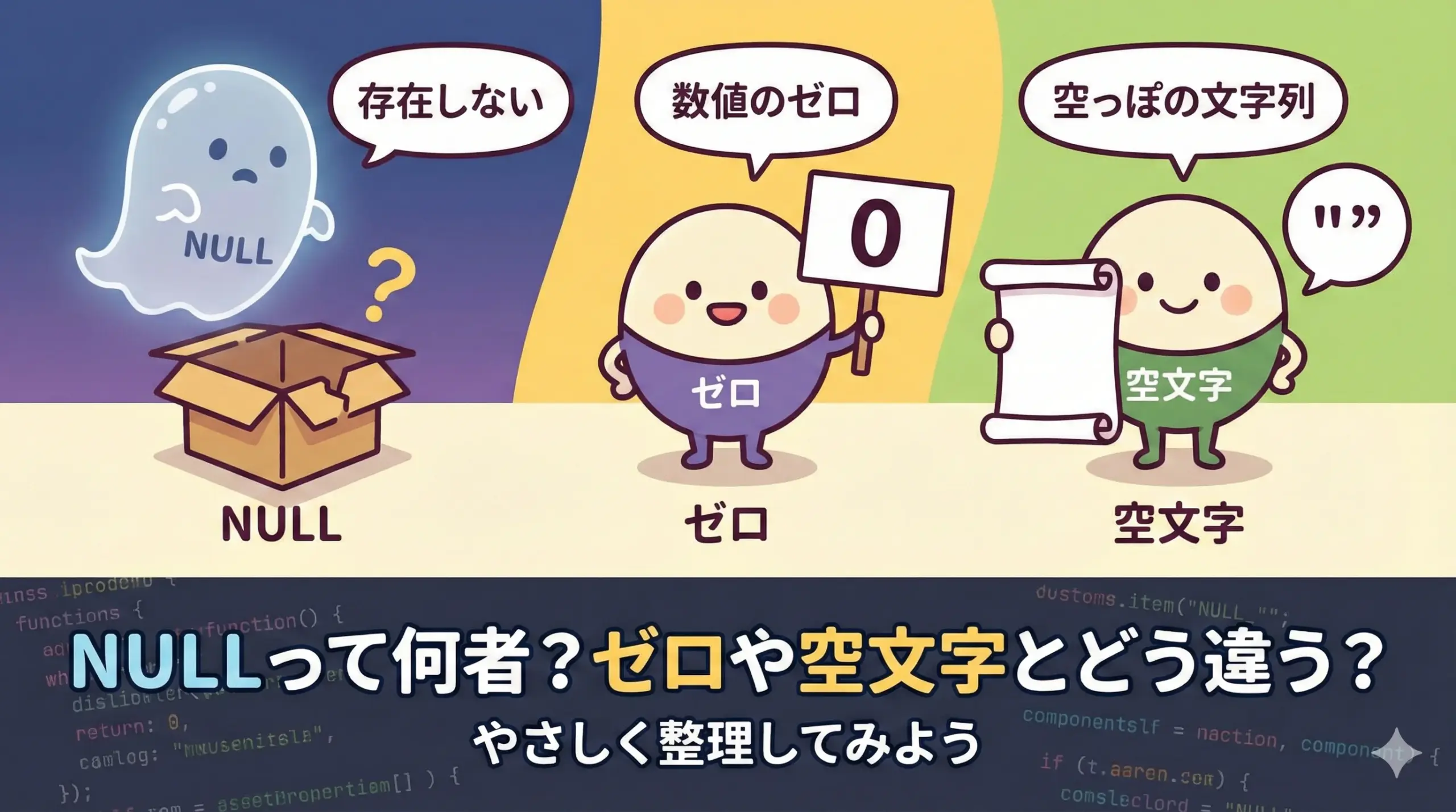 この記事では、NULLの正体や歴史的背景、よくあるトラブル、そしてうまく付き合うための設計のコツまで、丁寧に整理していきます。