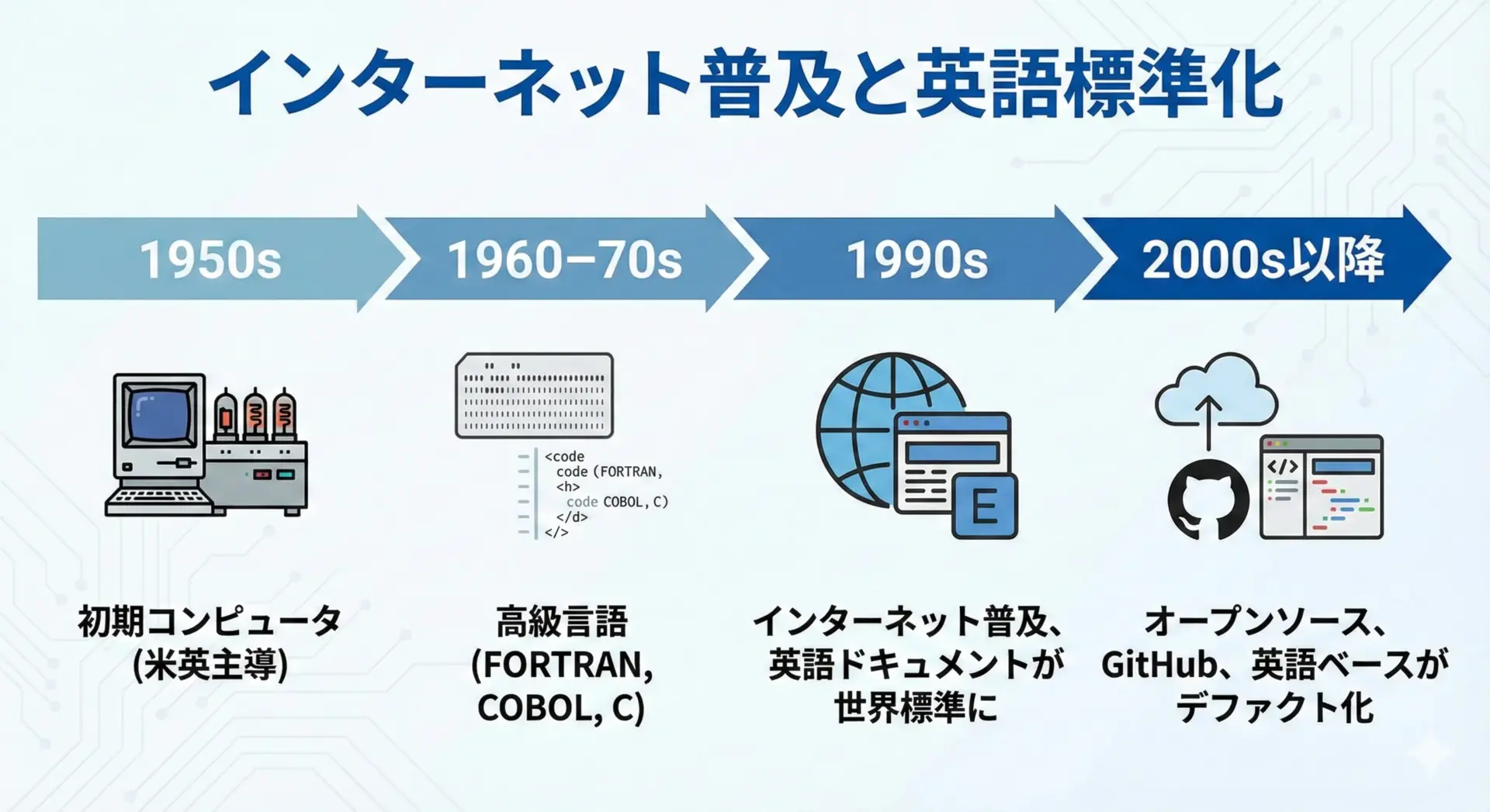 インターネット普及と英語ベース標準化の流れ