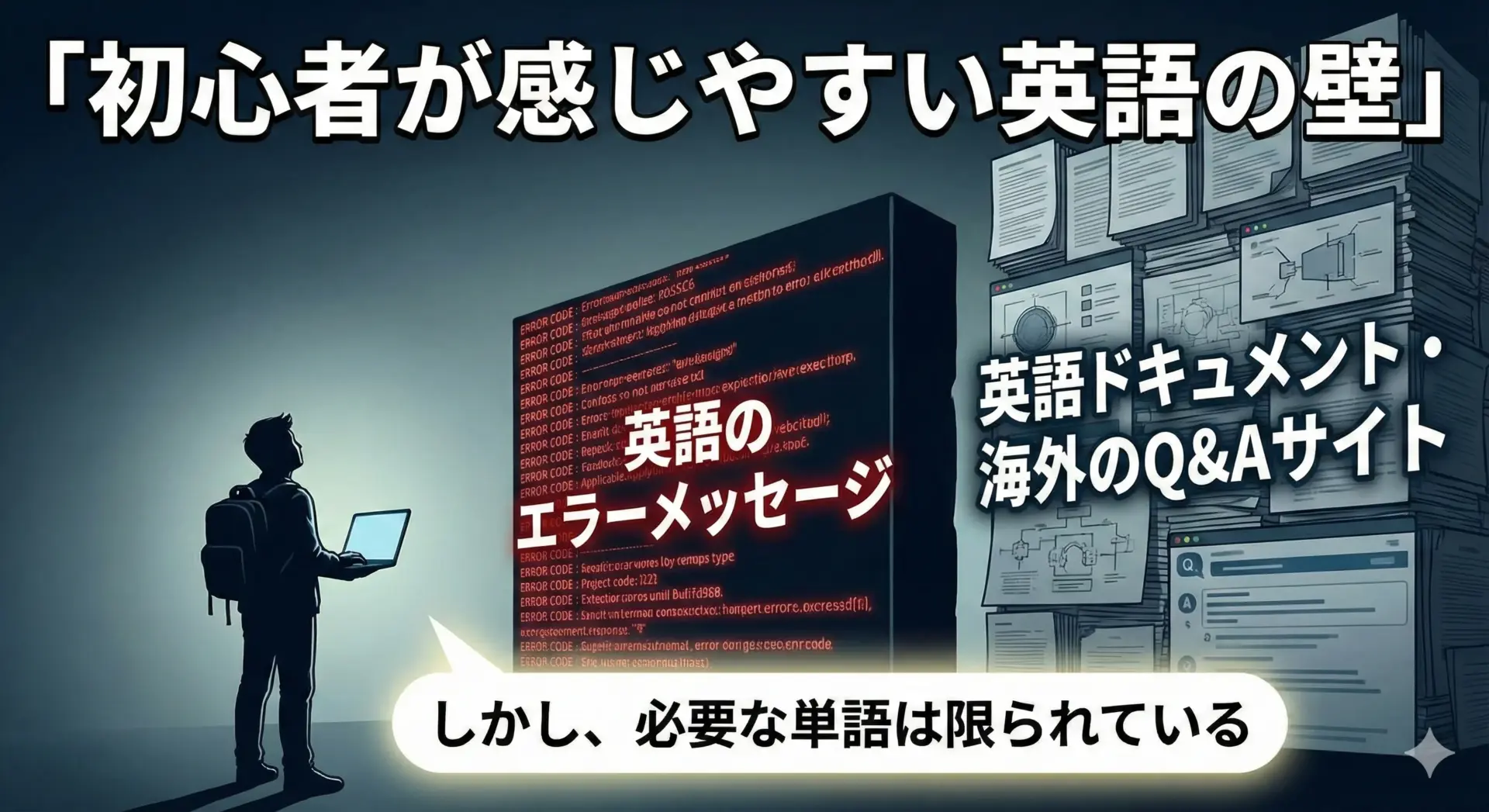 また、エラー文や公式ドキュメントを読む際に、単語の意味を都度調べる手間も発生します。