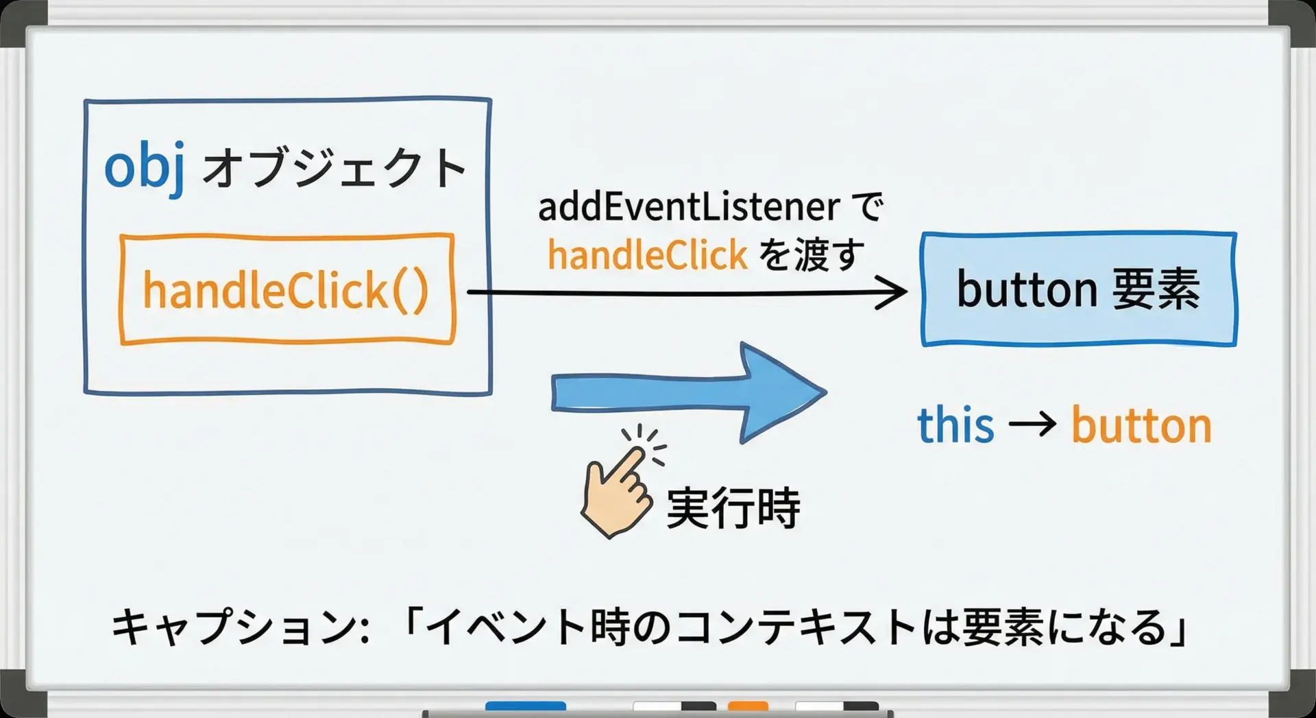 コールバック関数やイベントハンドラになると、コンテキストの罠にはまりやすくなります。