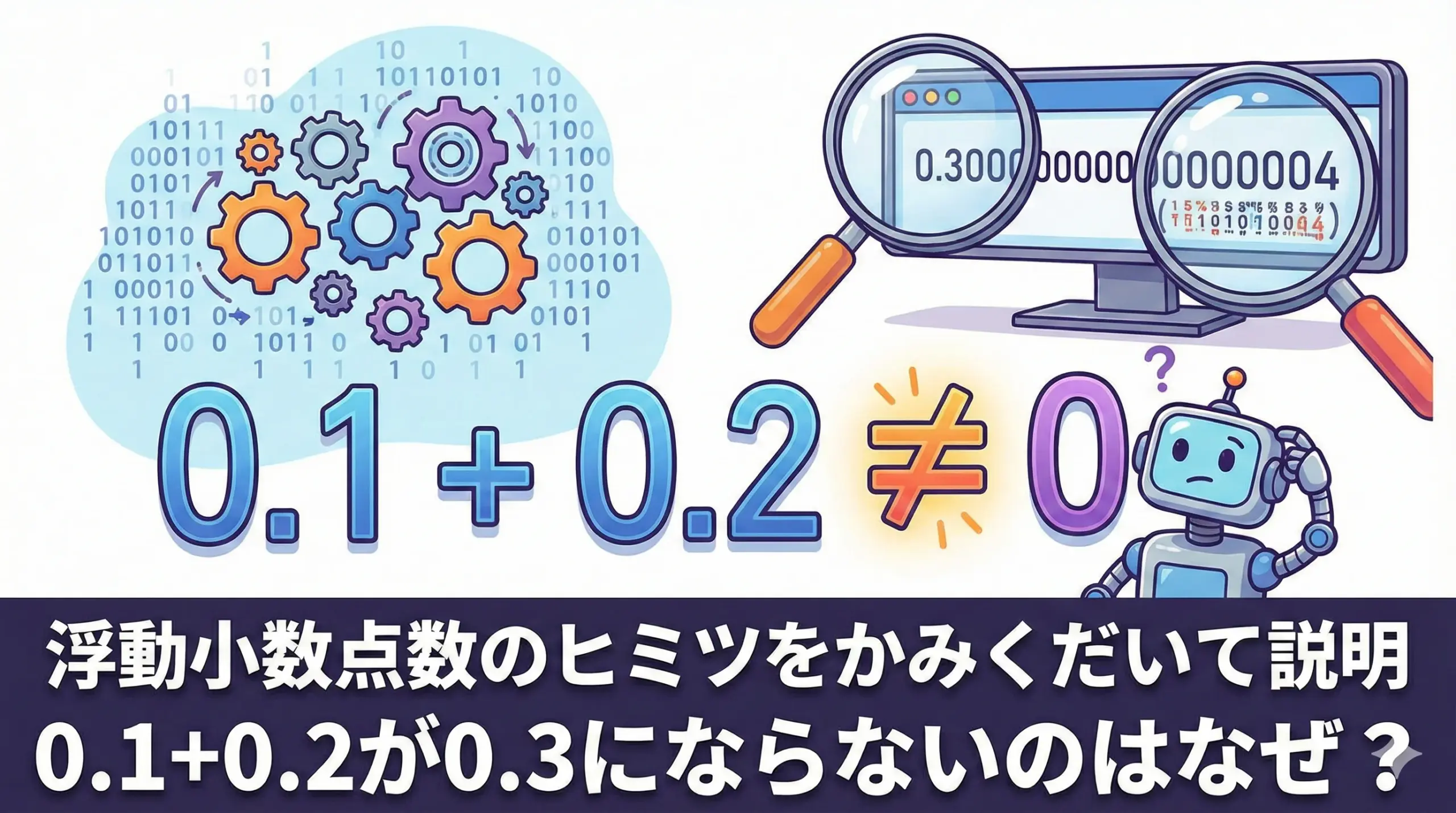 「0.1 + 0.2」が「0.3」にならない問題は、多くのプログラミング初心者が一度はつまずくポイントです。