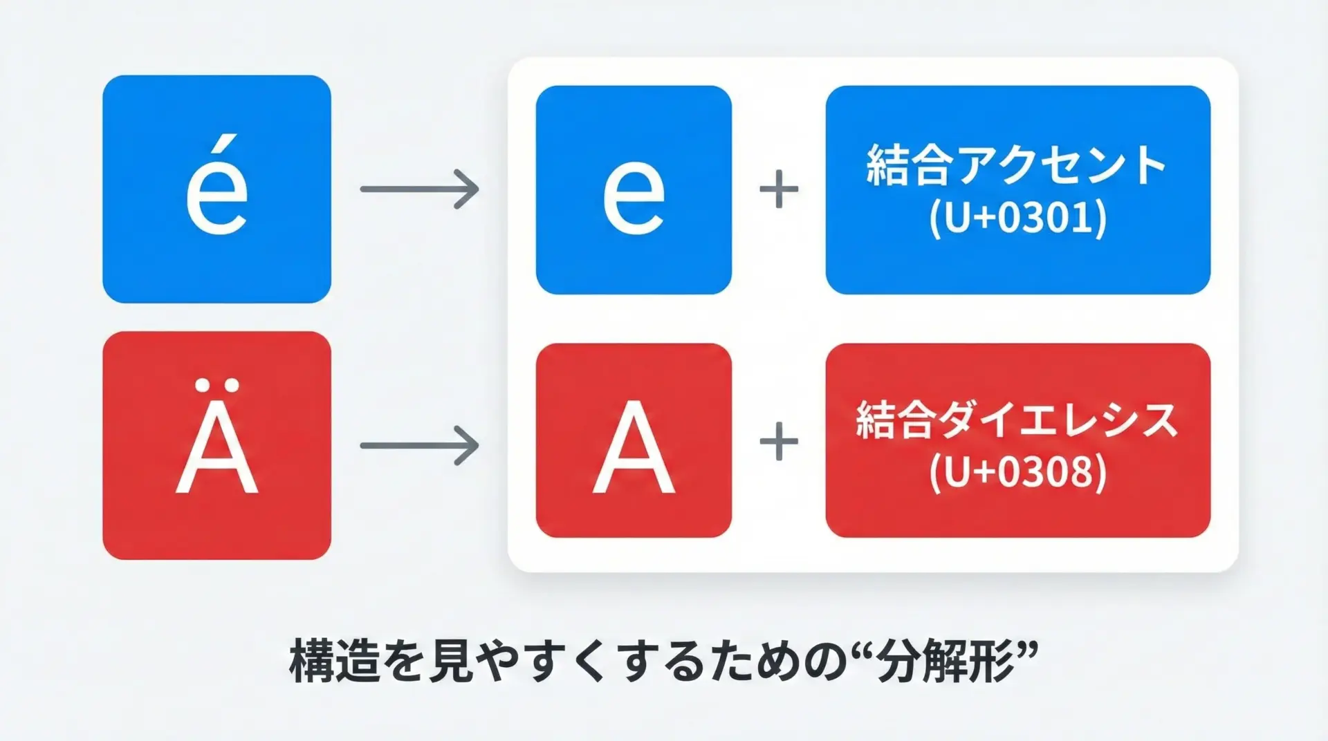 Unicodeは世界中の文字を統一的に扱うための仕組みですが、そのまま使うと「見た目は同じなのにバイト列が違う」という問題が頻繁に発生します。