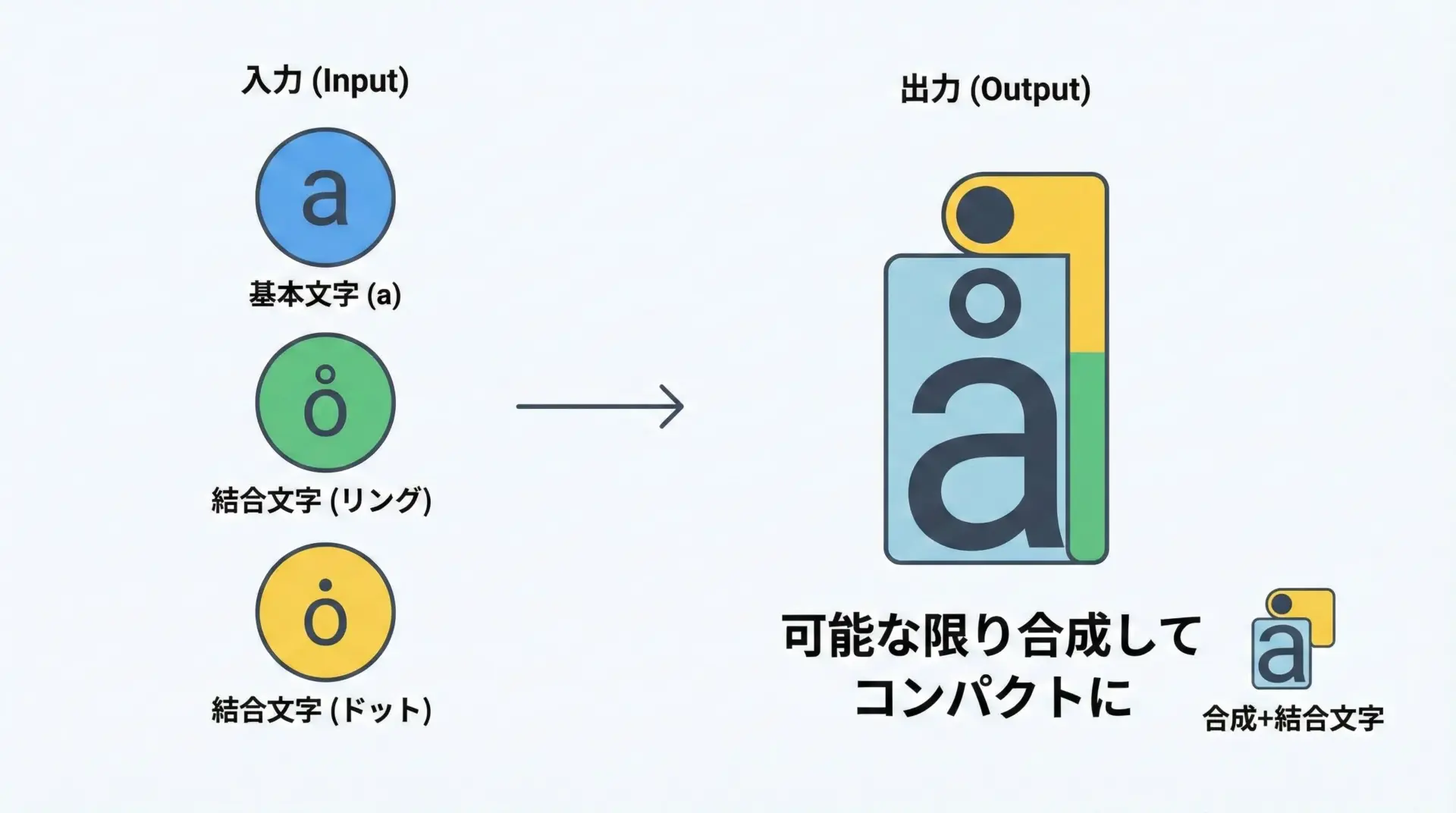 - 組み合わせ可能な文字は、できるだけ1文字にまとめる