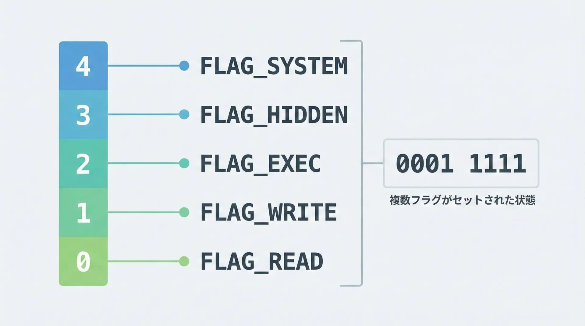 #define FLAG_READ (1 << 0) // 0000 0001: 読み取り権限