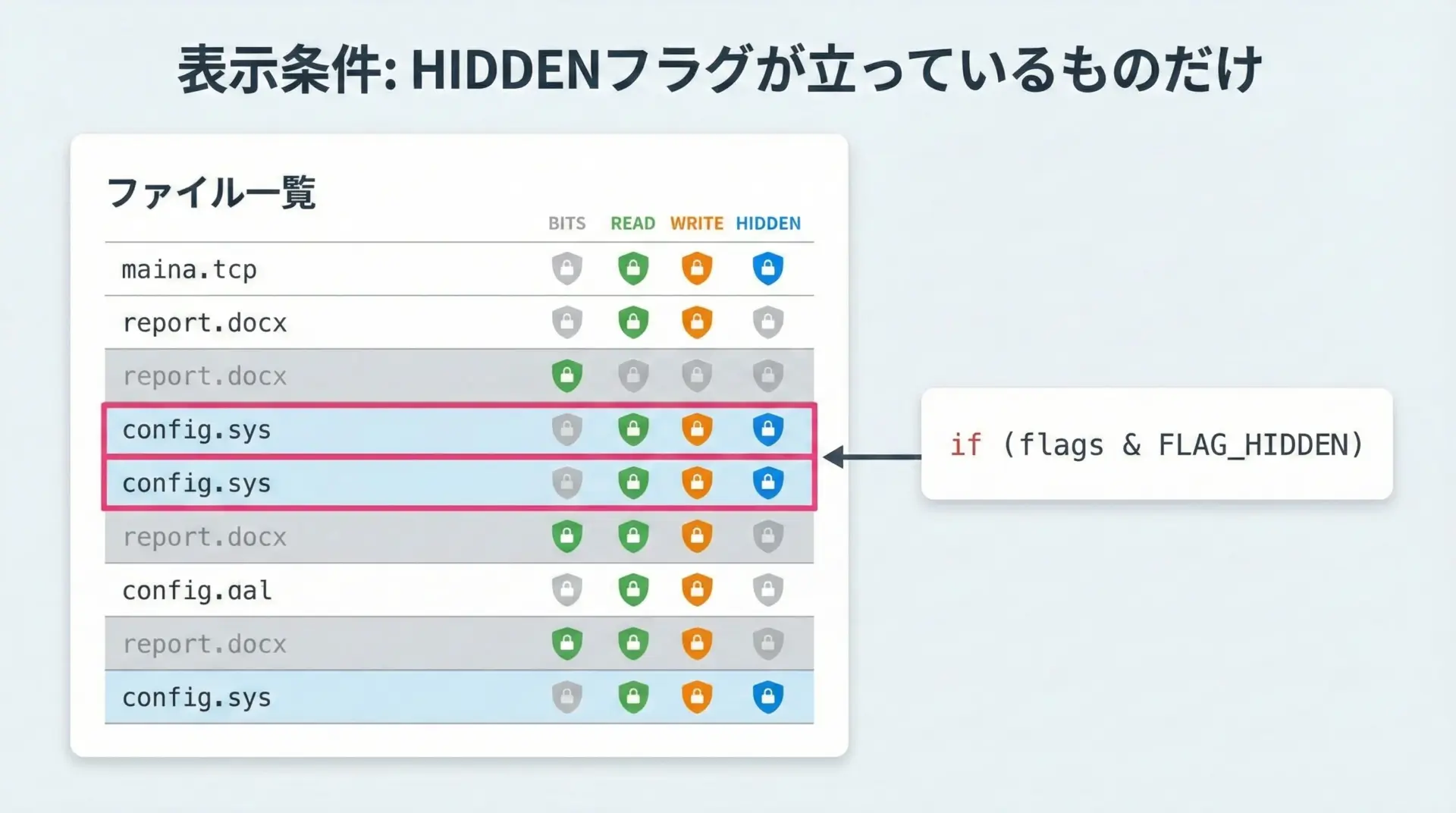 #define FLAG_HIDDEN (1 << 3) // 0000 1000: 隠し属性