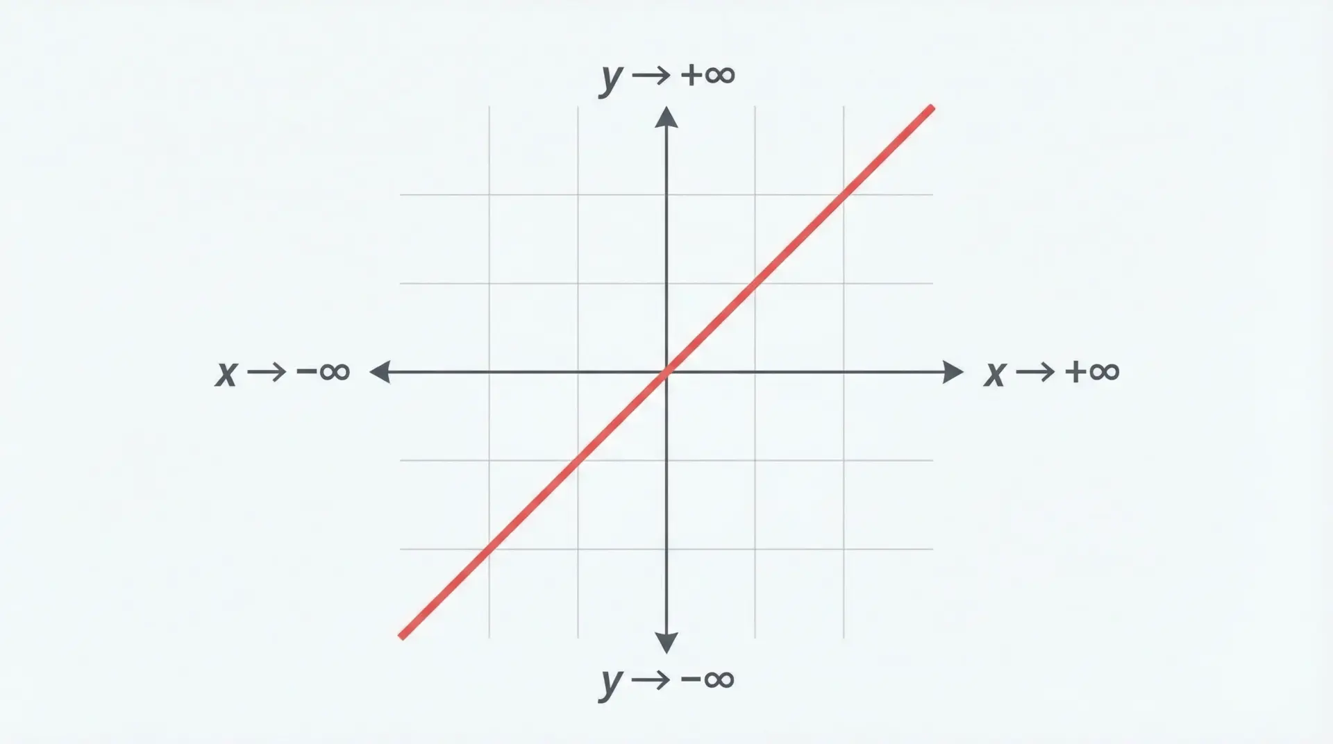 左側の「x→±∞」は、入力(変数)がどこへ向かうかを示し、 右側の「= ±∞」や「= 実数」は、出力(値)がどこへ向かうかを示しています。