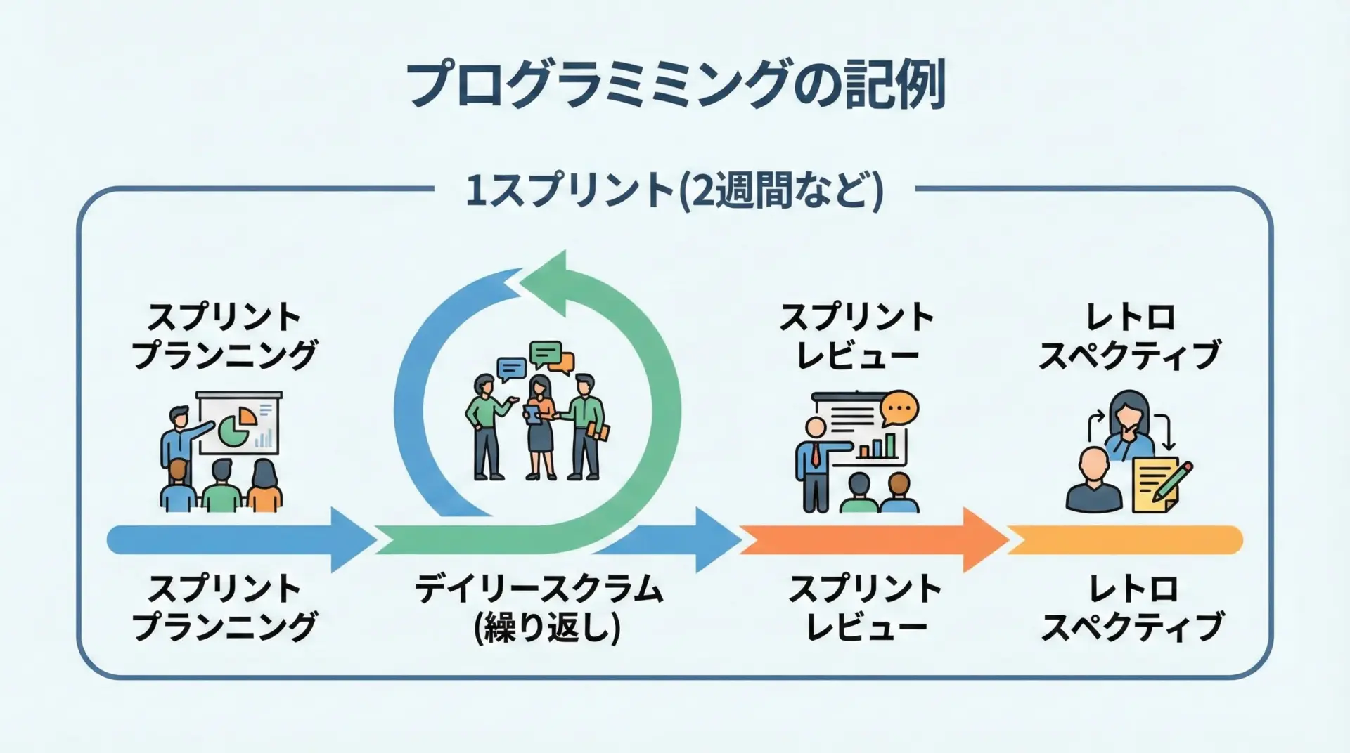 スプリントレトロスペクティブは、チームのやり方や関わり方を改善するための振り返りの場です。