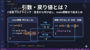 本記事では、C言語の関数とは何かから始めて、宣言と定義の書き方、自作関数の作り方、標準関数との組み合わせ方まで、順を追って丁寧に解説します。