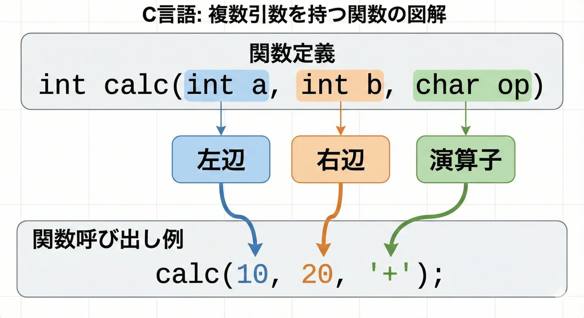 C言語における引数と戻り値は、関数を用いてプログラムを構造化するうえでの基礎となる概念です。