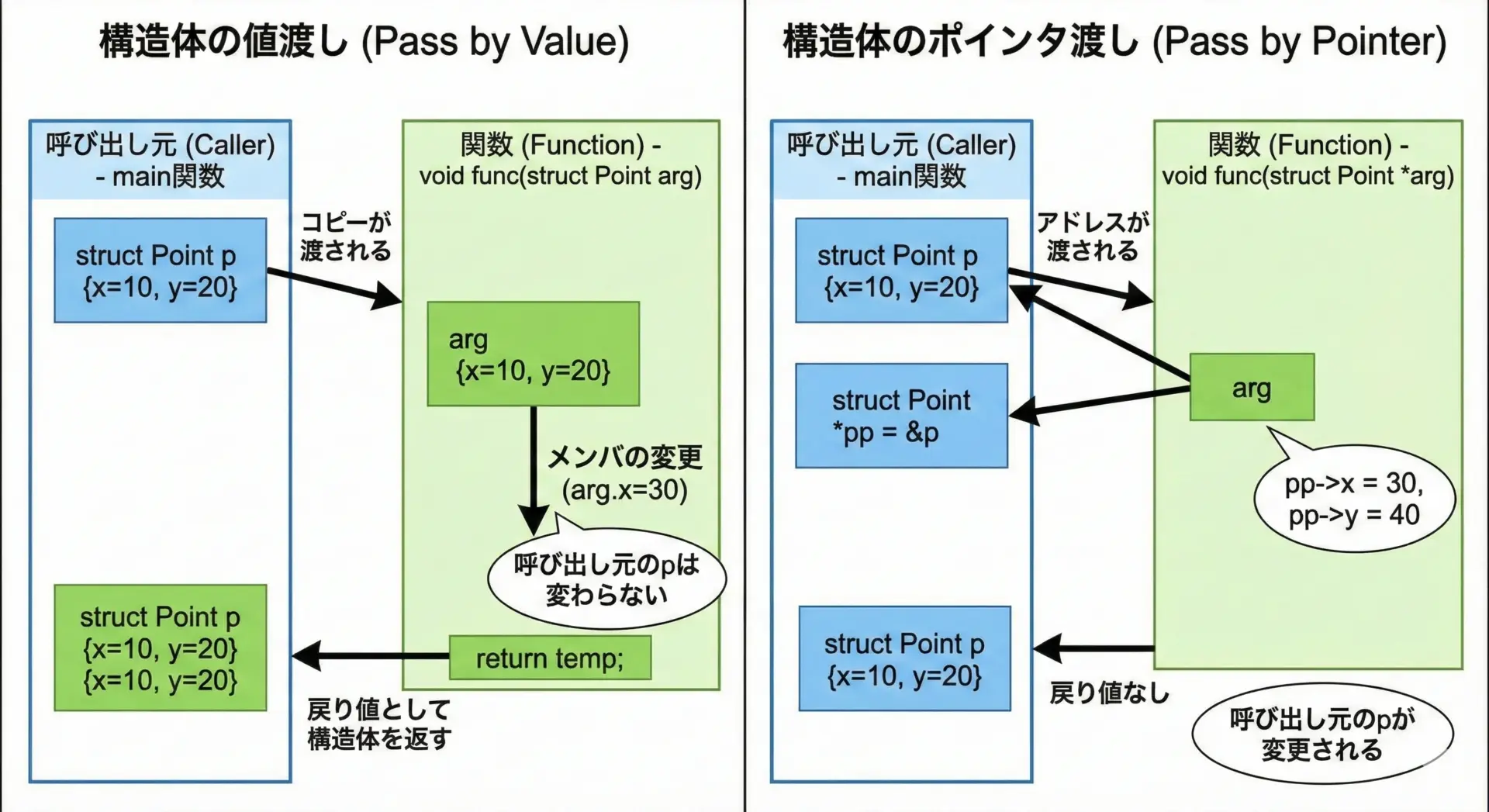 このように、複数の値を一度にまとめて渡したい・返したいときに構造体は非常に便利です。