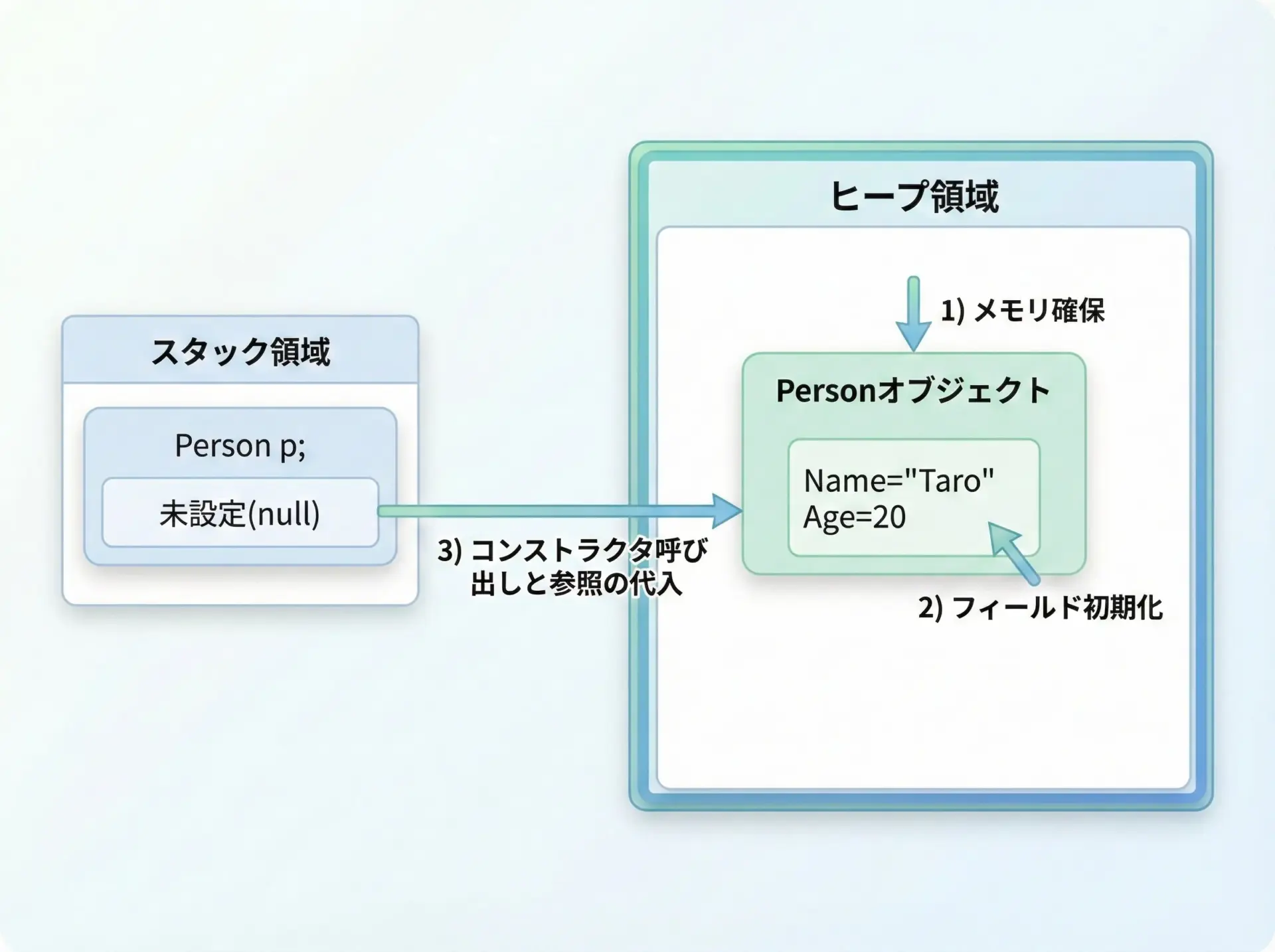 C#では、クラスからオブジェクトを生成することをインスタンス化と呼びます。