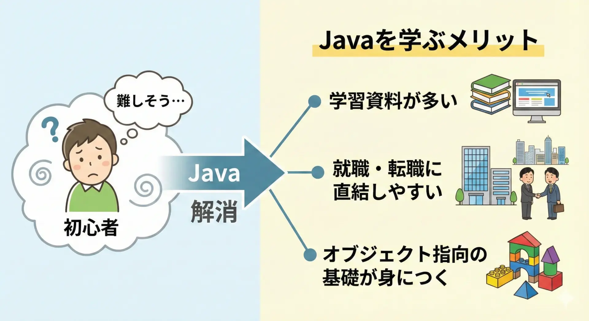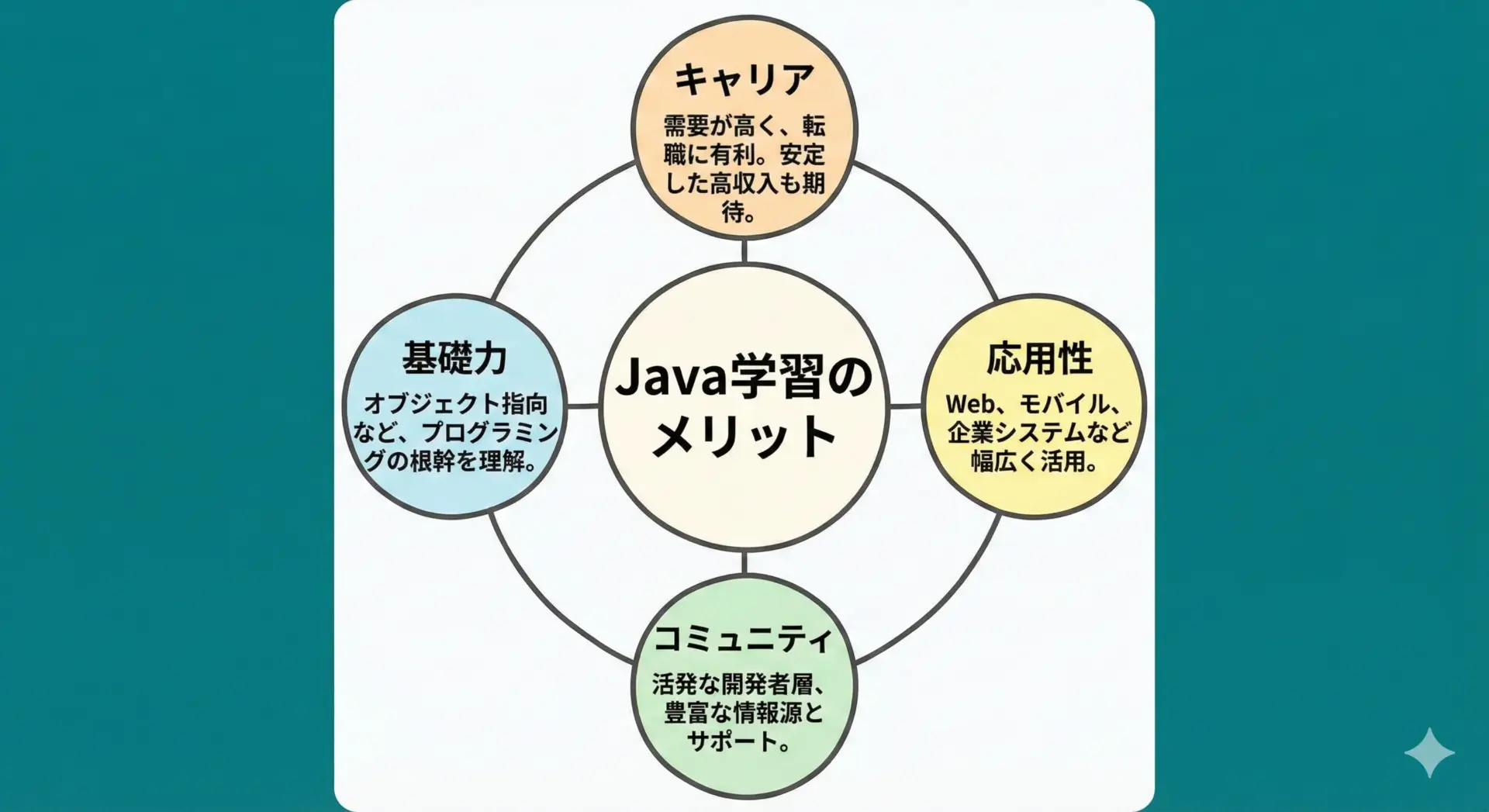 Javaを学ぶメリットは、単に「Javaが書けるようになる」ことにとどまりません。