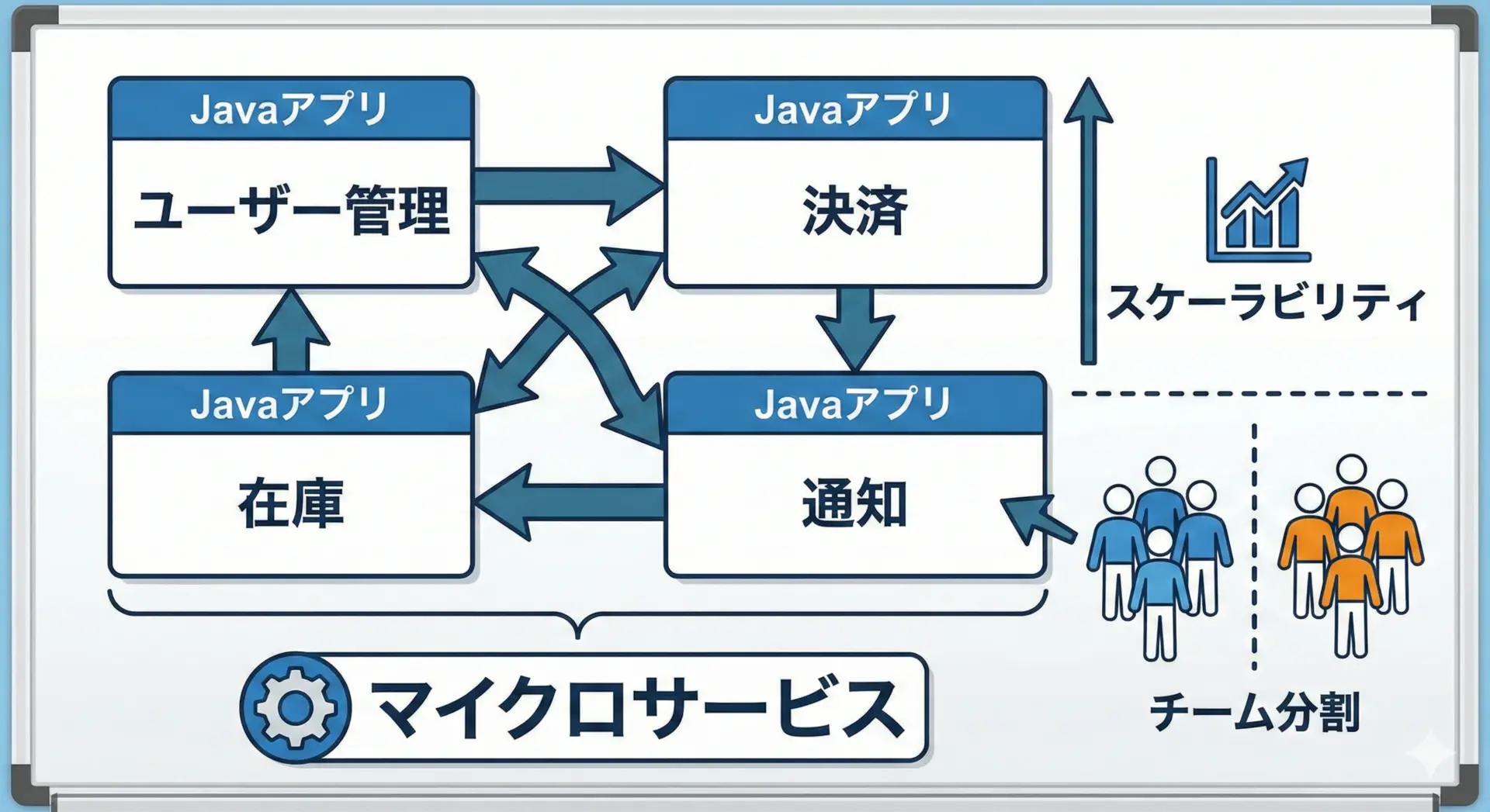 大規模システムでJavaが好まれる理由は複数ありますが、特に重要なのは次の3点です。