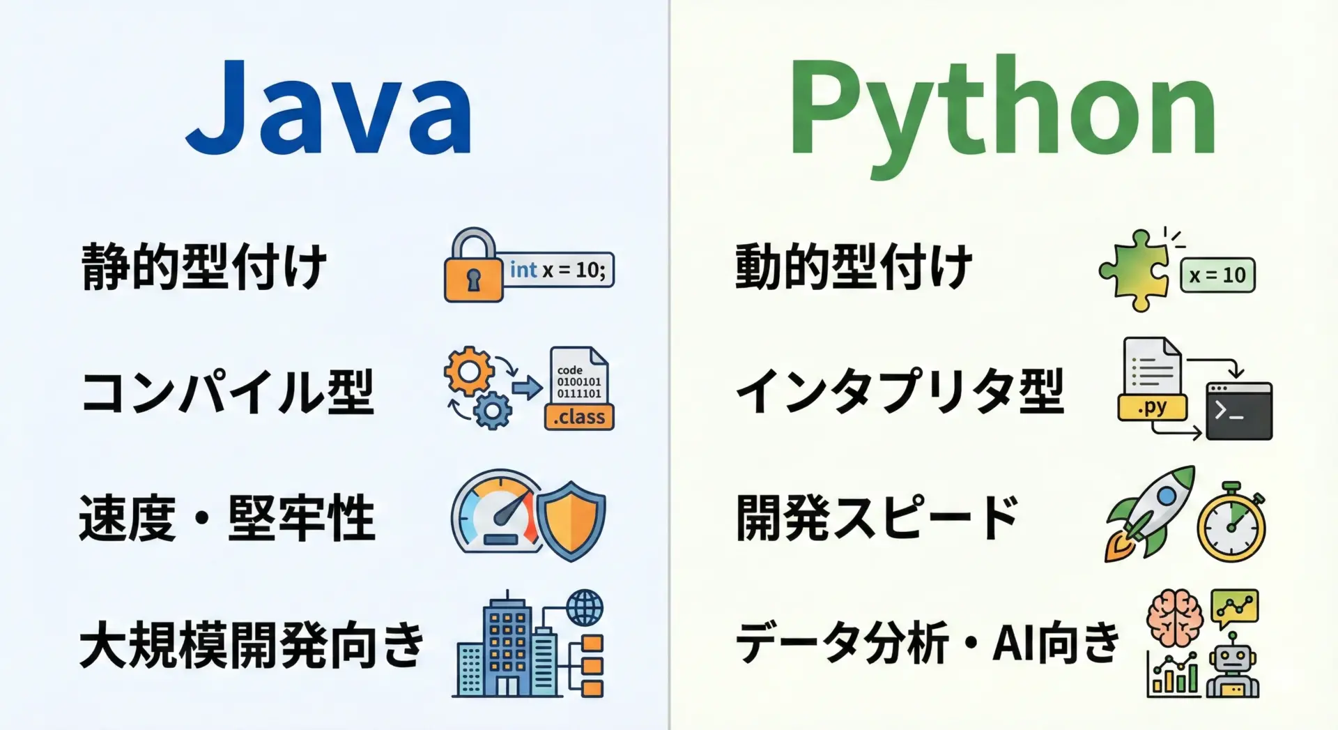 Javaと他言語(Python・JavaScript・C言語など)の違い