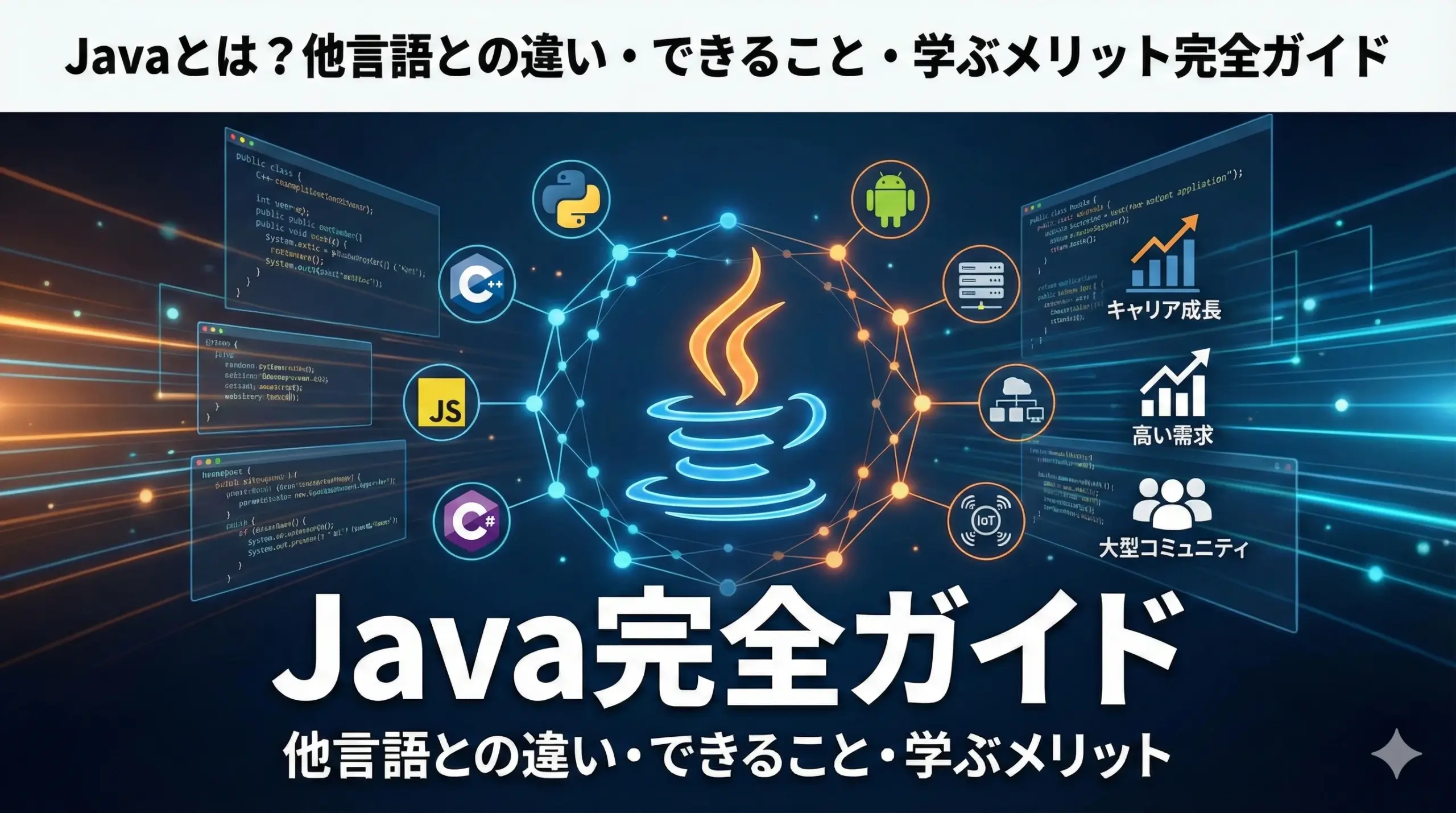 本記事では、Javaとは何か・どんなことができるのか・他言語とどう違うのか・どうやって学べばよいかを、プログラミング初心者でも順を追って理解できるように詳しく解説します。