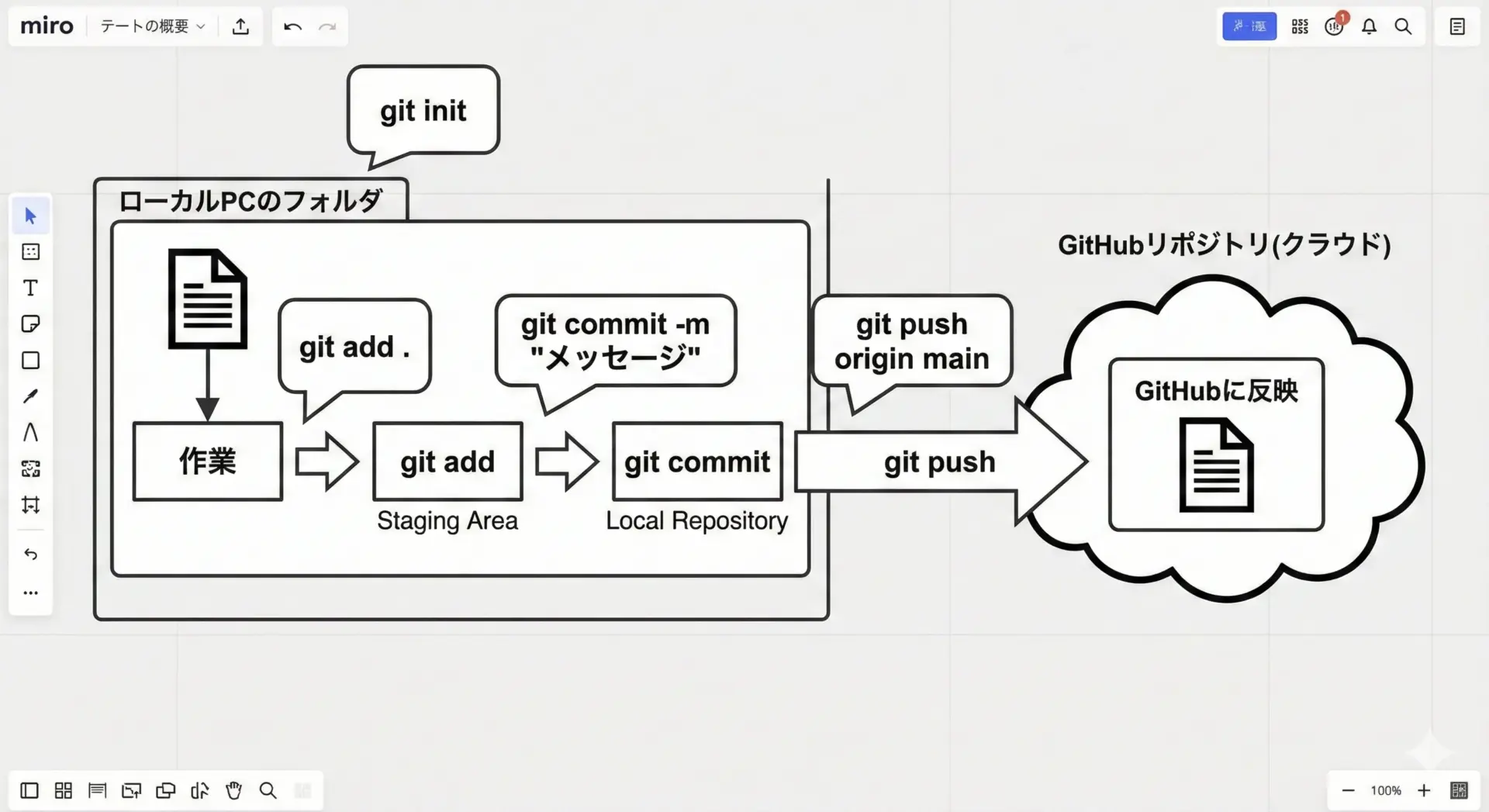 git init/ GitHub上でリポジトリ作成) - 変更のステージング(