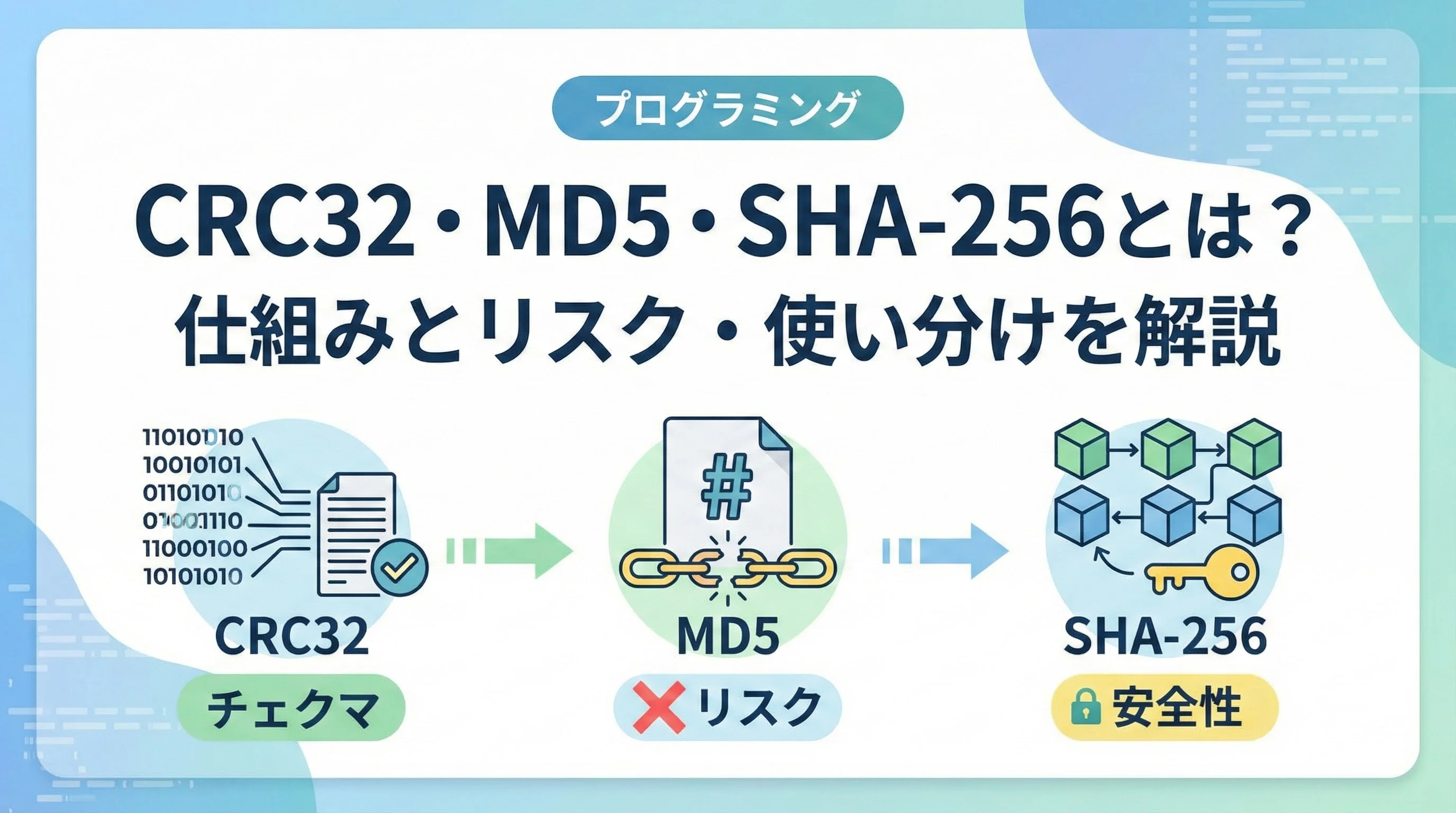 CRC32・MD5・SHA-256とは?仕組みとリスク・使い分けを解説