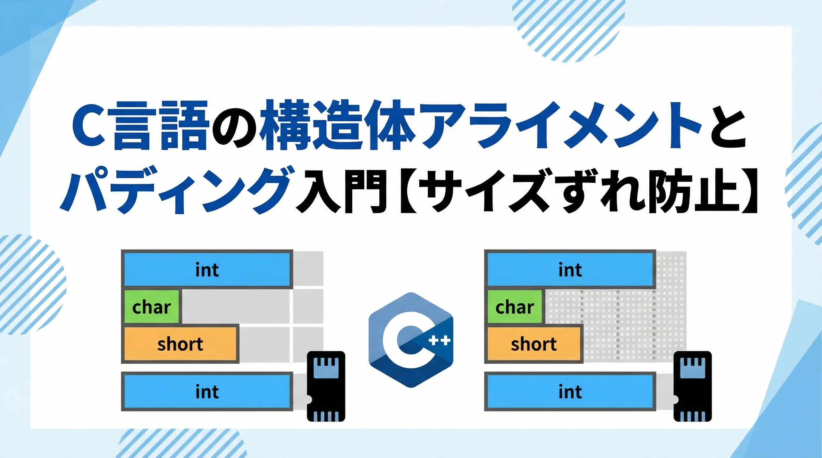 C言語で構造体を使っていると、「思ったよりサイズが大きい」「メモリ配置が想定と違う」と感じることがあります。 これはコン…