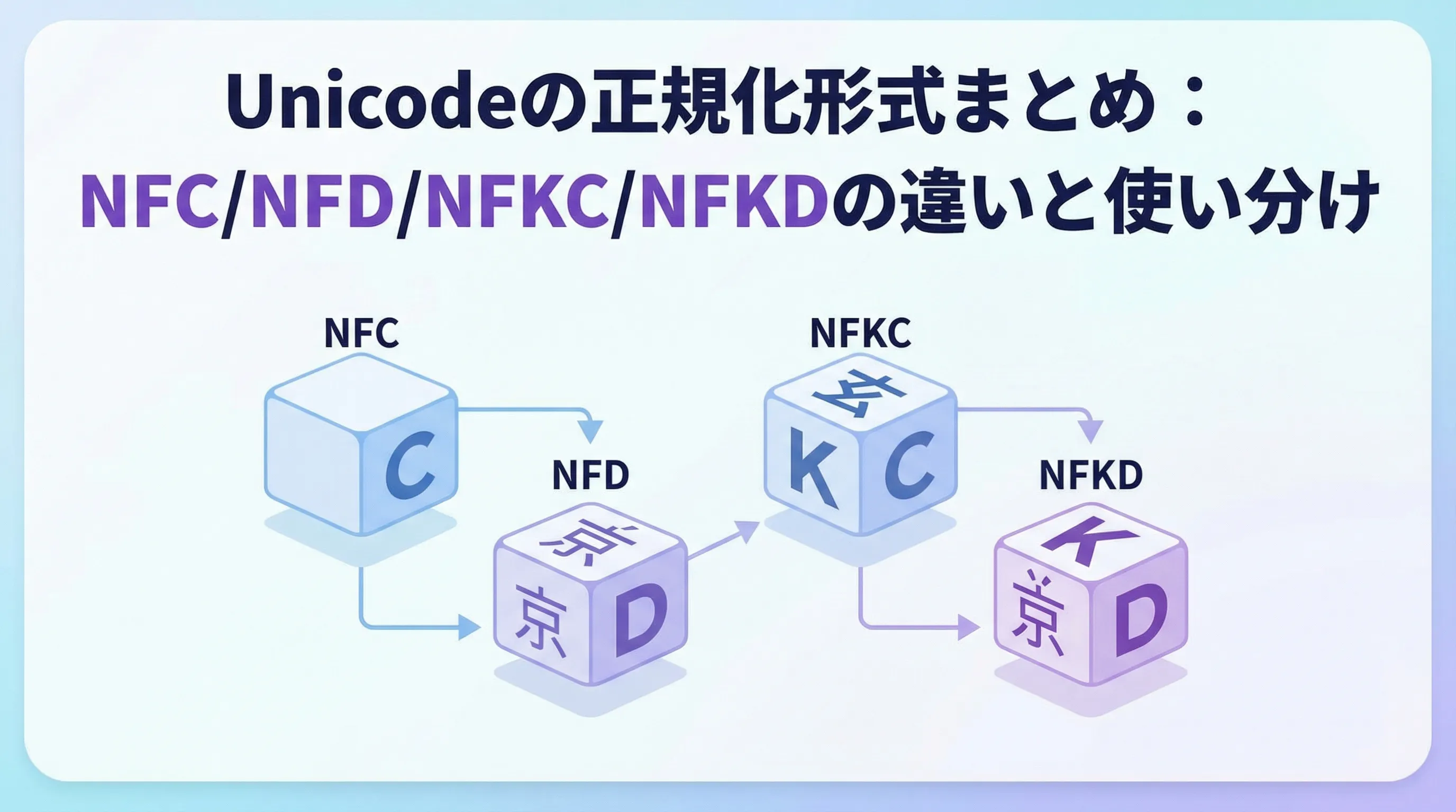 Unicodeの正規化形式まとめ:NFC/NFD/NFKC/NFKDの違いと使い分け