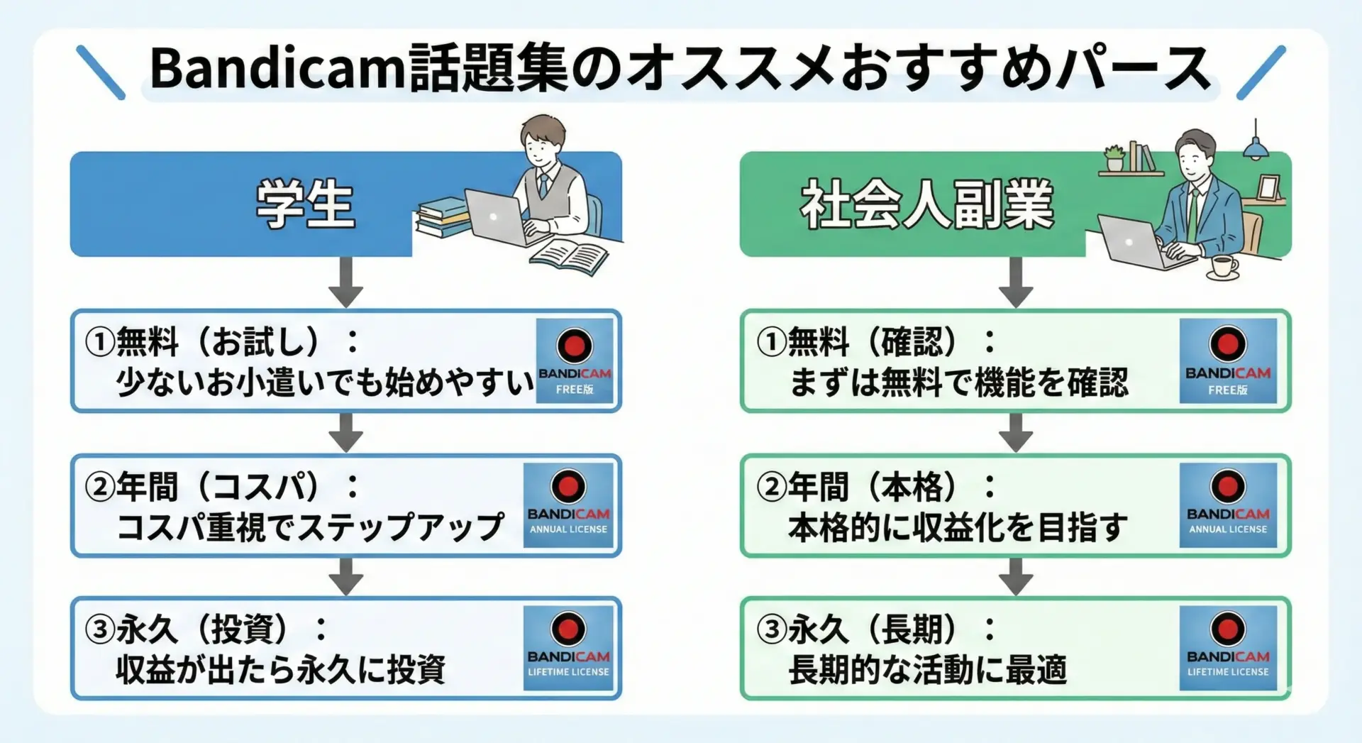 学生・副業クリエイターに向いたBandicamの契約パターン