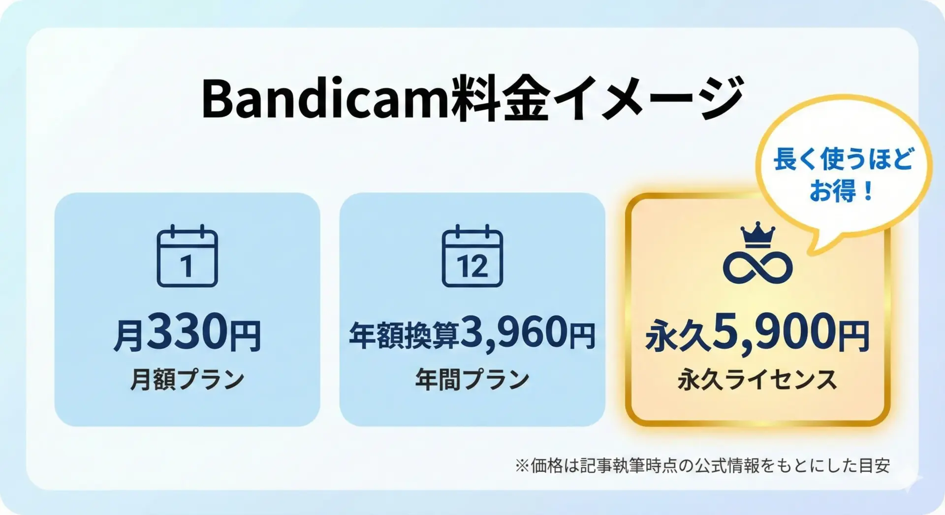 Bandicamの永久ライセンスはお得か?基本の料金プラン