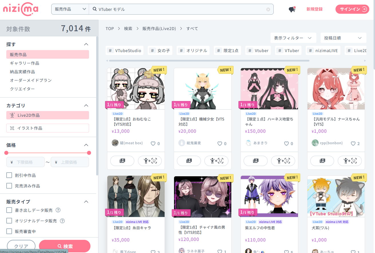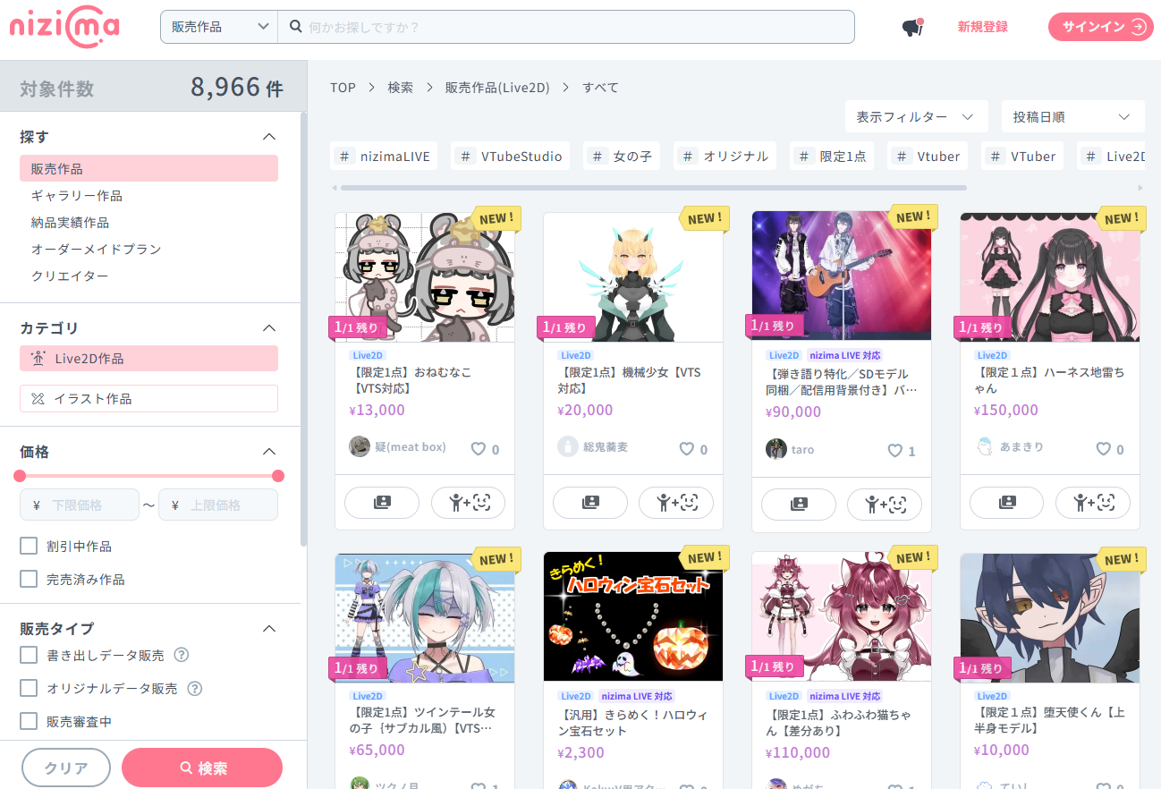 nizimaはVTuber用途に最適化された出品が豊富です。
