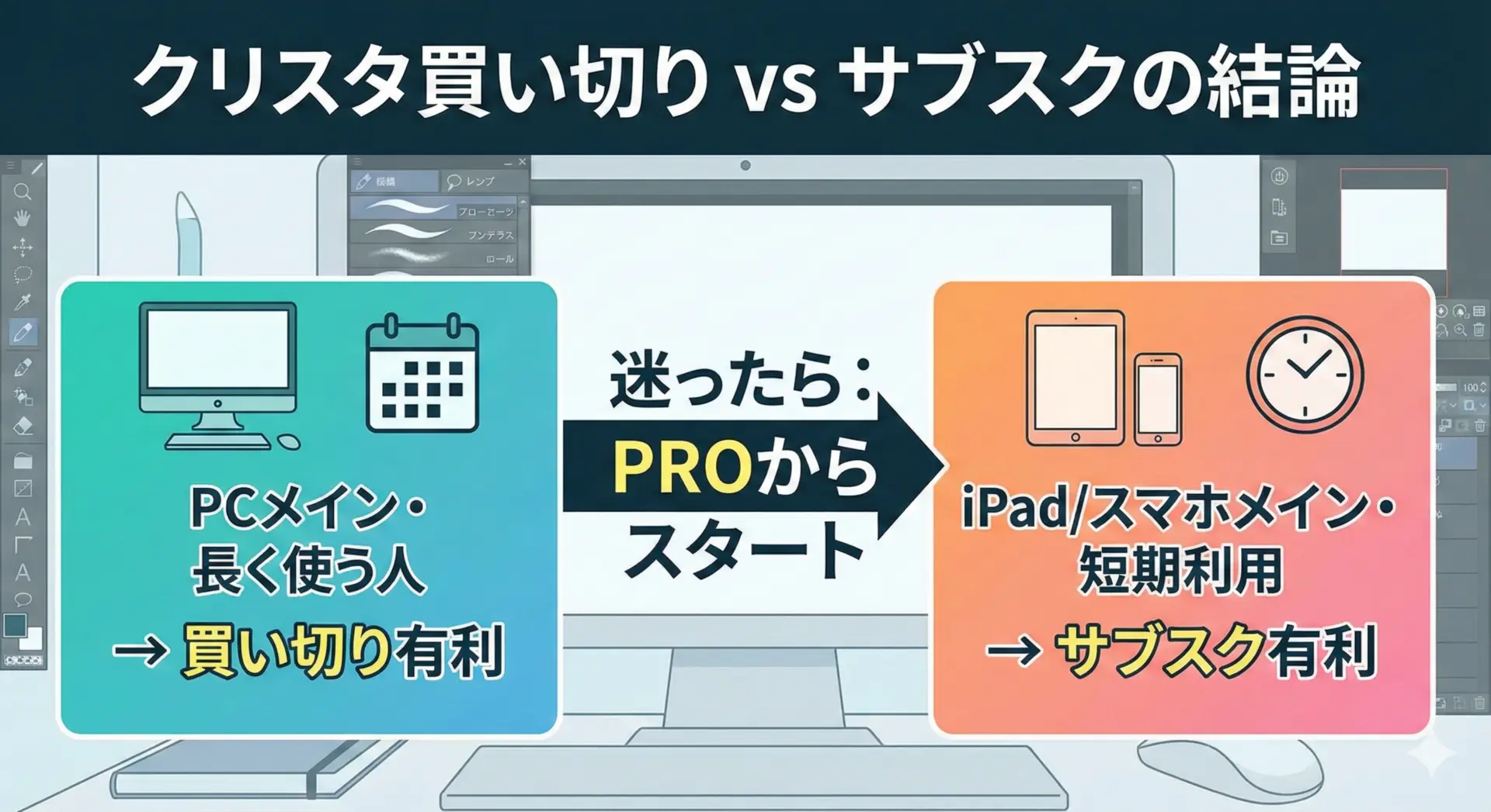 迷いを手放し、今のあなたに最適なCLIP STUDIO PAINTの購入方法を即断できるようにします。