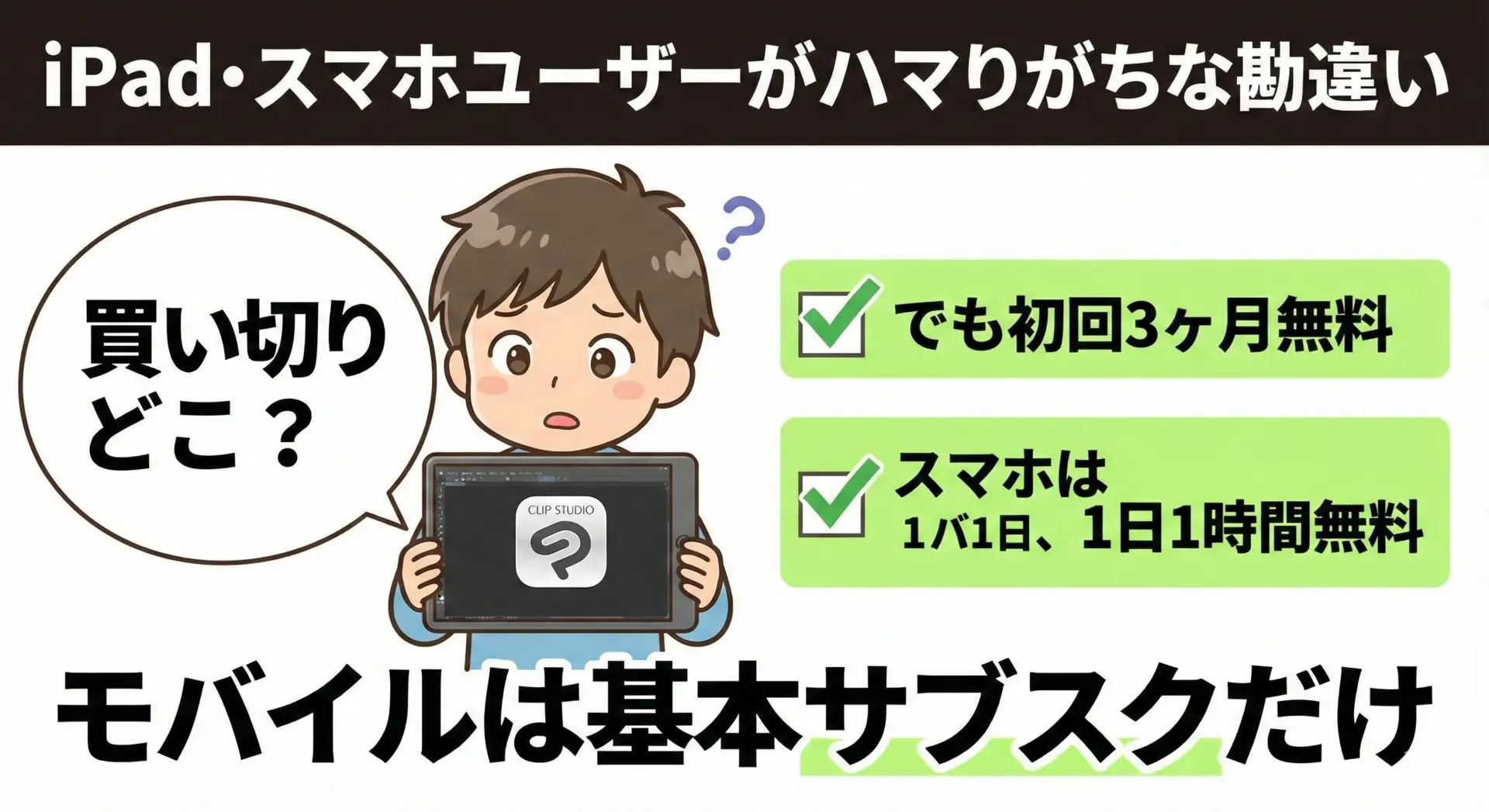 一方で、動作環境の読み違い、買い切り版のアップデート範囲、サブスクの端末数制限、PRO/EXの機能差、アップグレードやセールの見落としは、購入後の満足度を左右します。