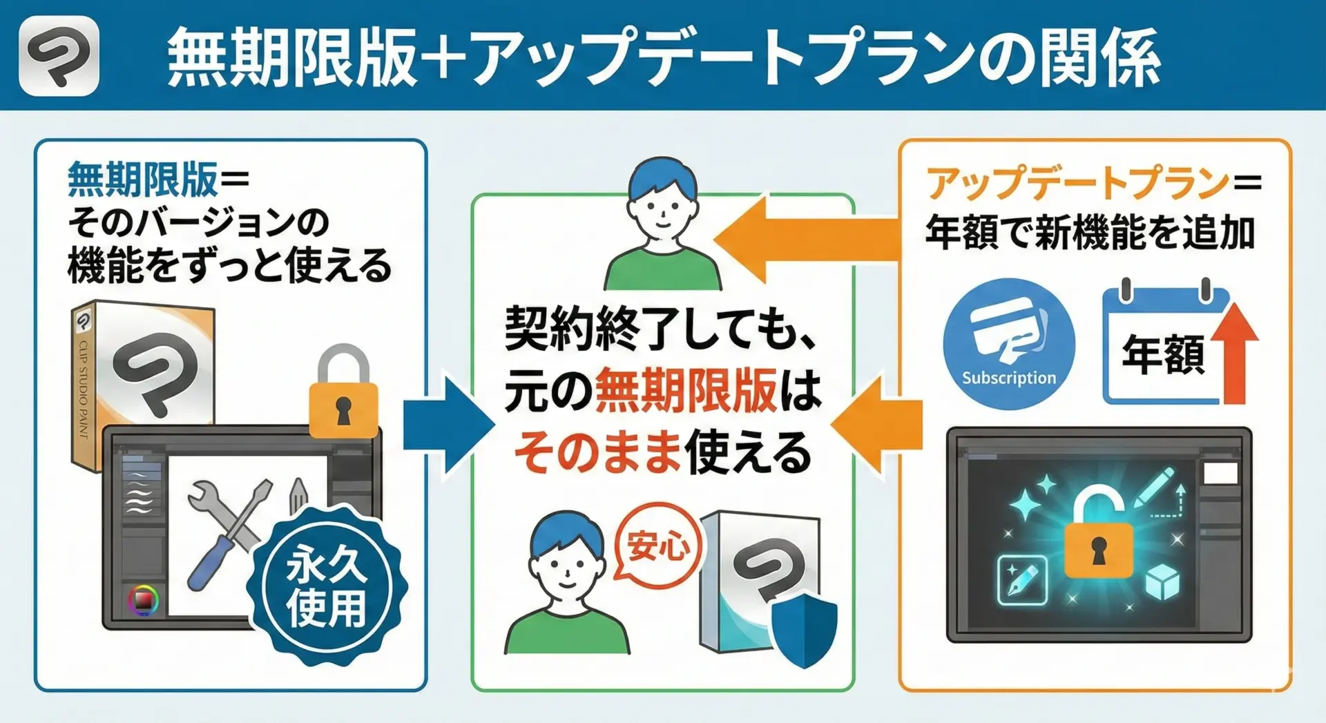 「買い切りソフトだと、いつか開発終了して無駄になるのでは?」と心配する人もいますが、クリスタに関してはその心配はかなり薄いです。