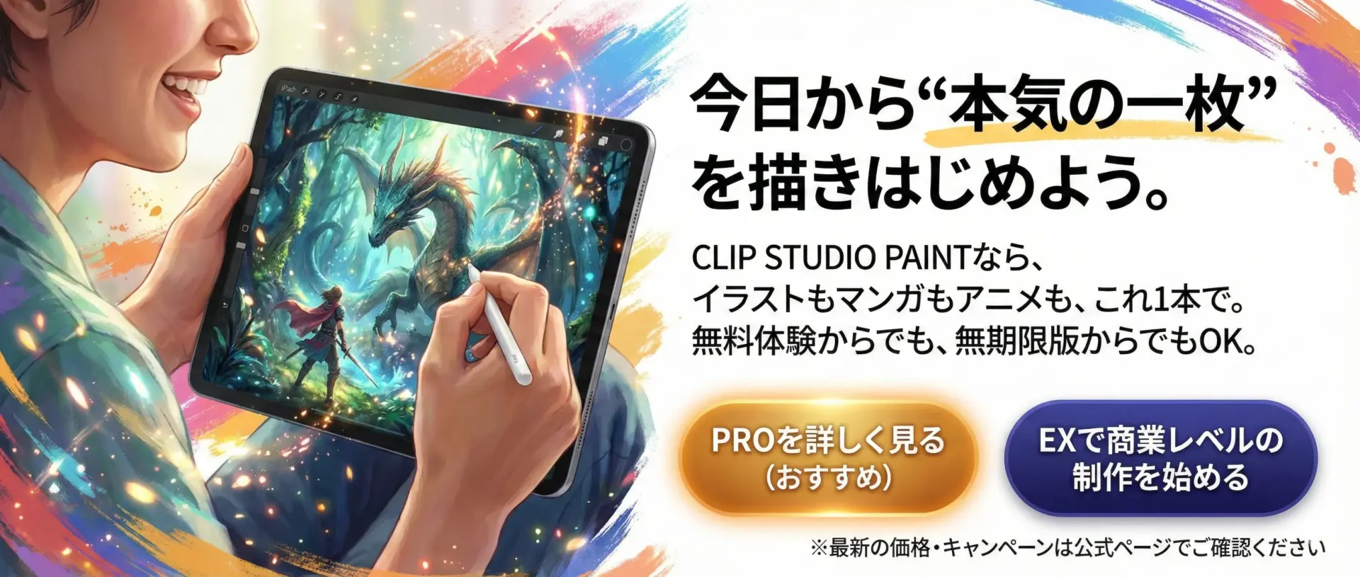 あなたの頭の中にあるイメージを、そのままキャンバスに呼び出すための「本気の1本」として、CLIP STUDIO PAINTを選んでみてください。