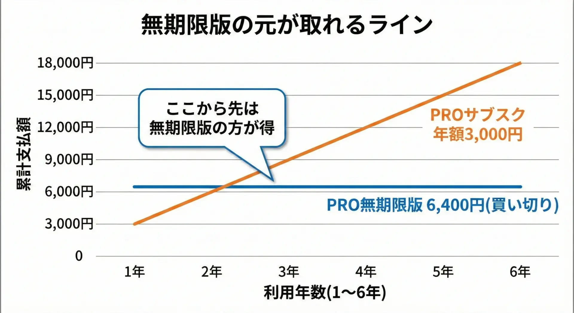 無期限版(PRO/EX)の価格と「元が取れる年数」