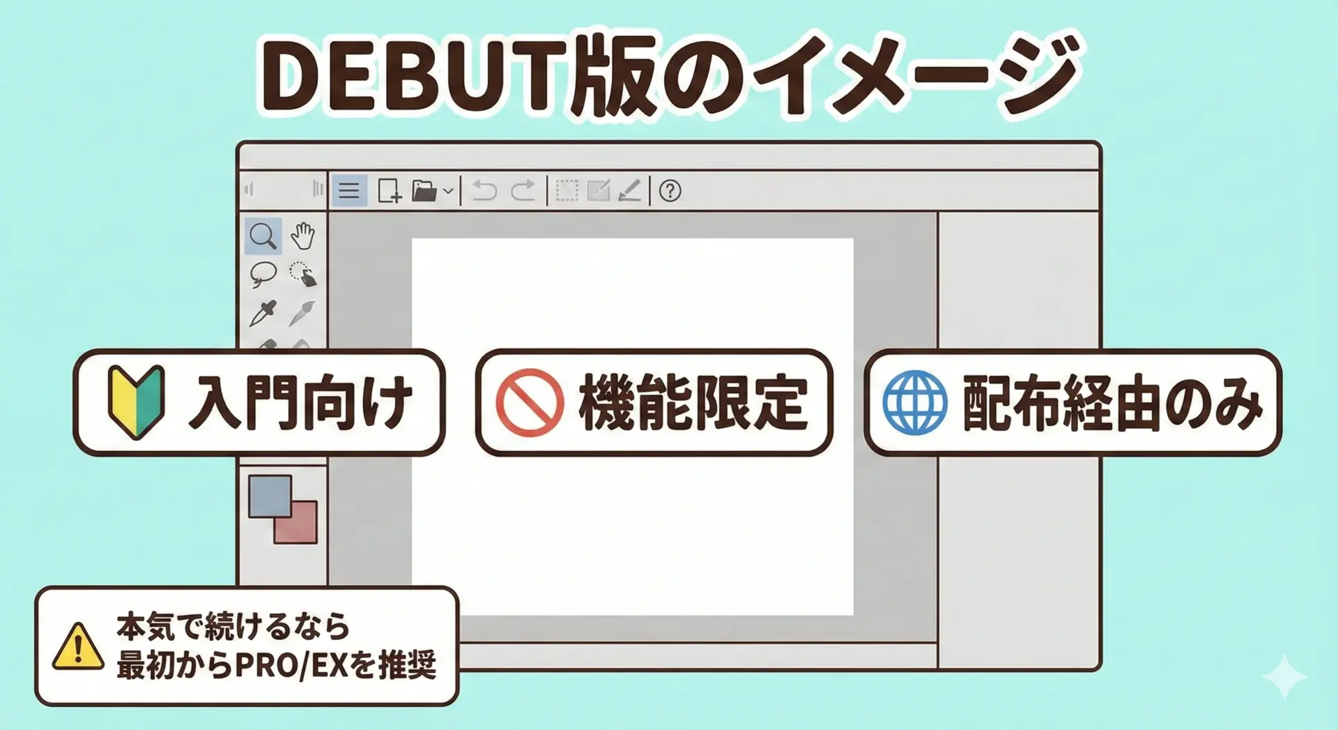 CLIP STUDIO PAINT DEBUTは、入門者向けの機能限定版です。