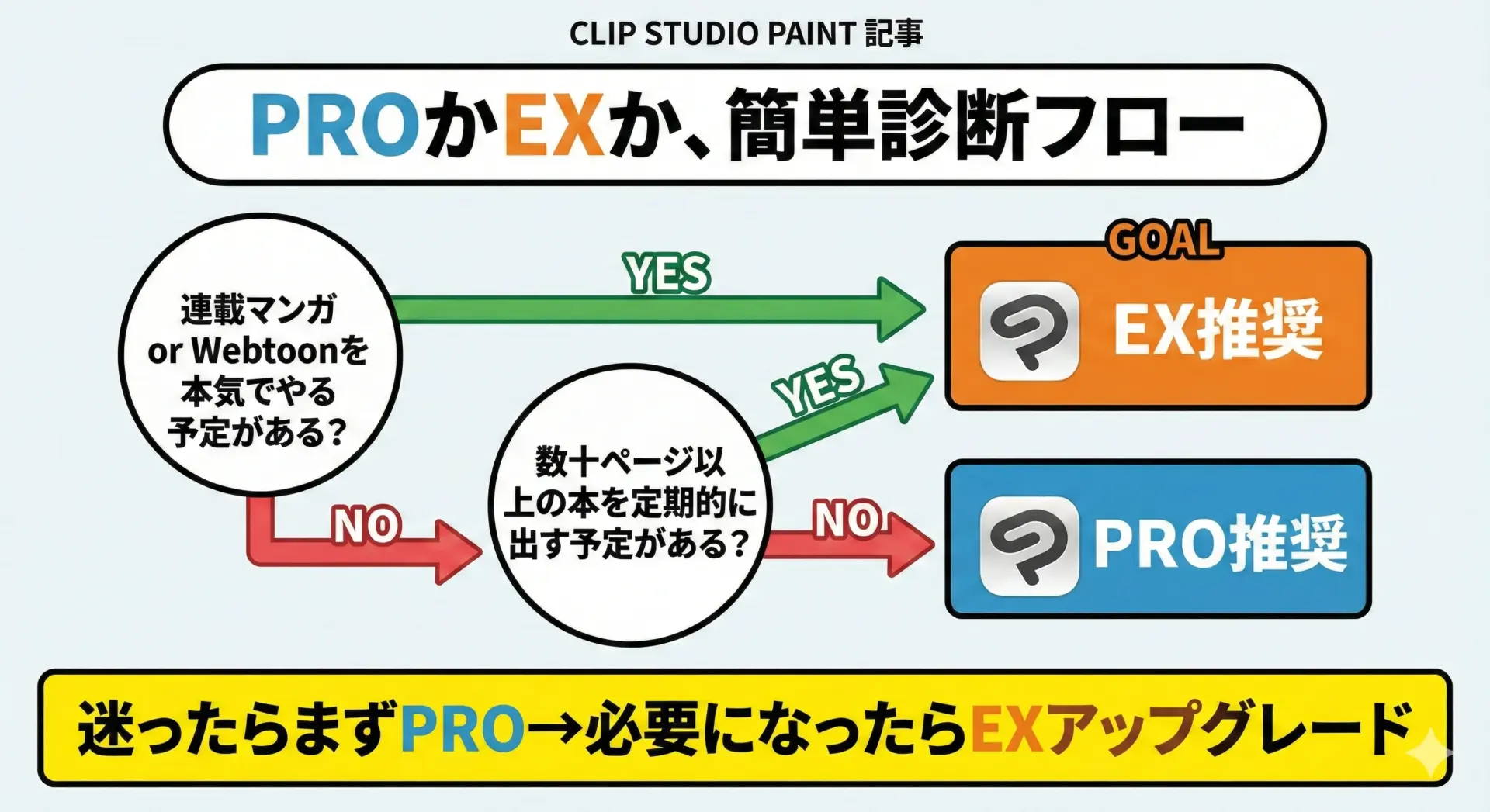 → 資金に余裕がなければ、PROで始めて早めにEXへアップグレード